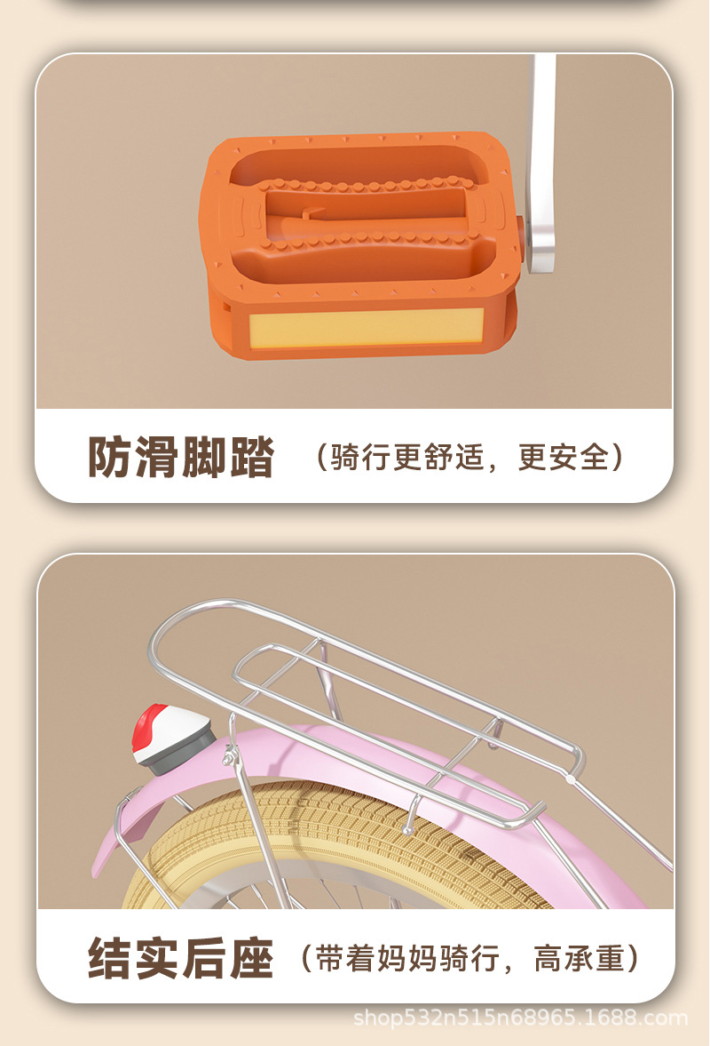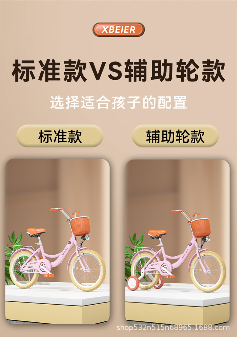 ベージュ(黄色タイヤ+補助輪),ピンク(黄色タイヤ+補助輪),ベージュ(ブラックタイヤ+補助輪),ピンク(黒タイヤ+補助輪),ベージュ(イエロータイヤ+カーステー),ピンク(黄色タイヤ+カーステー),ピンク(ブラックタイヤ+カーステー),ベージュ(ブラックタイヤ+カーステー)