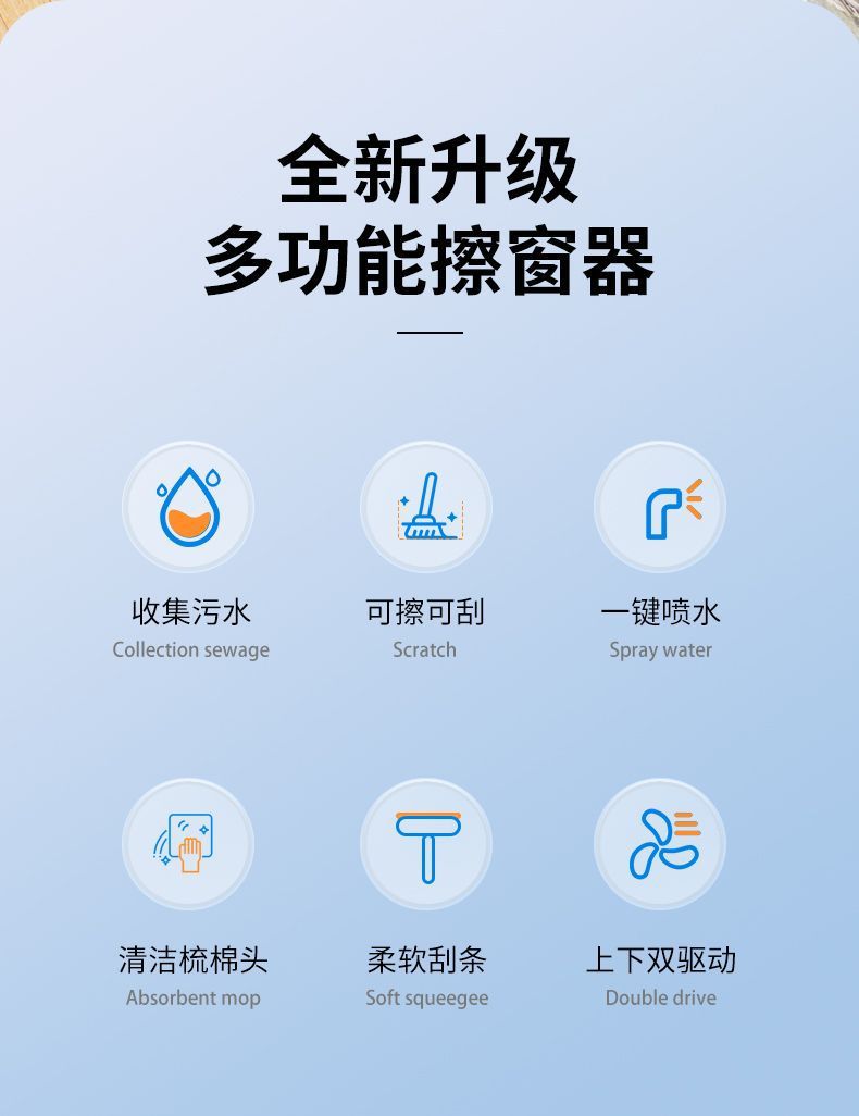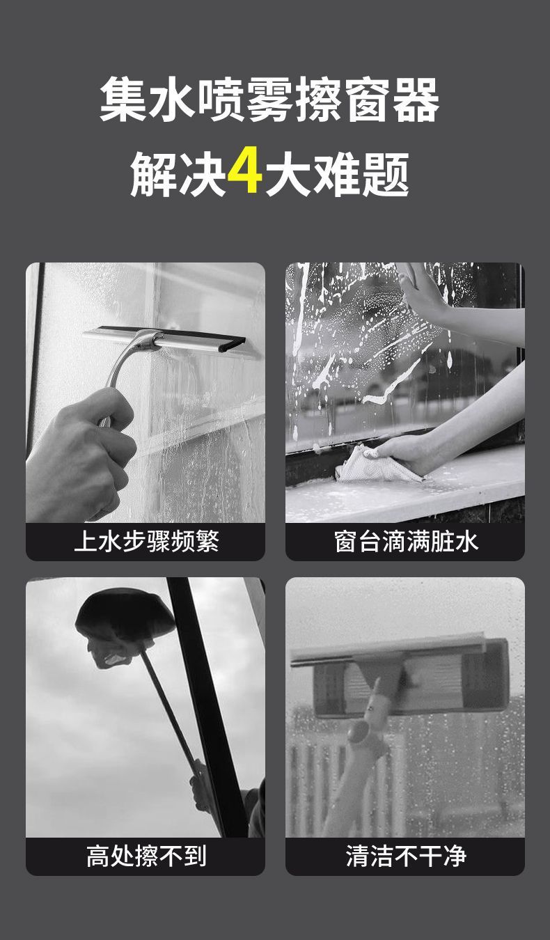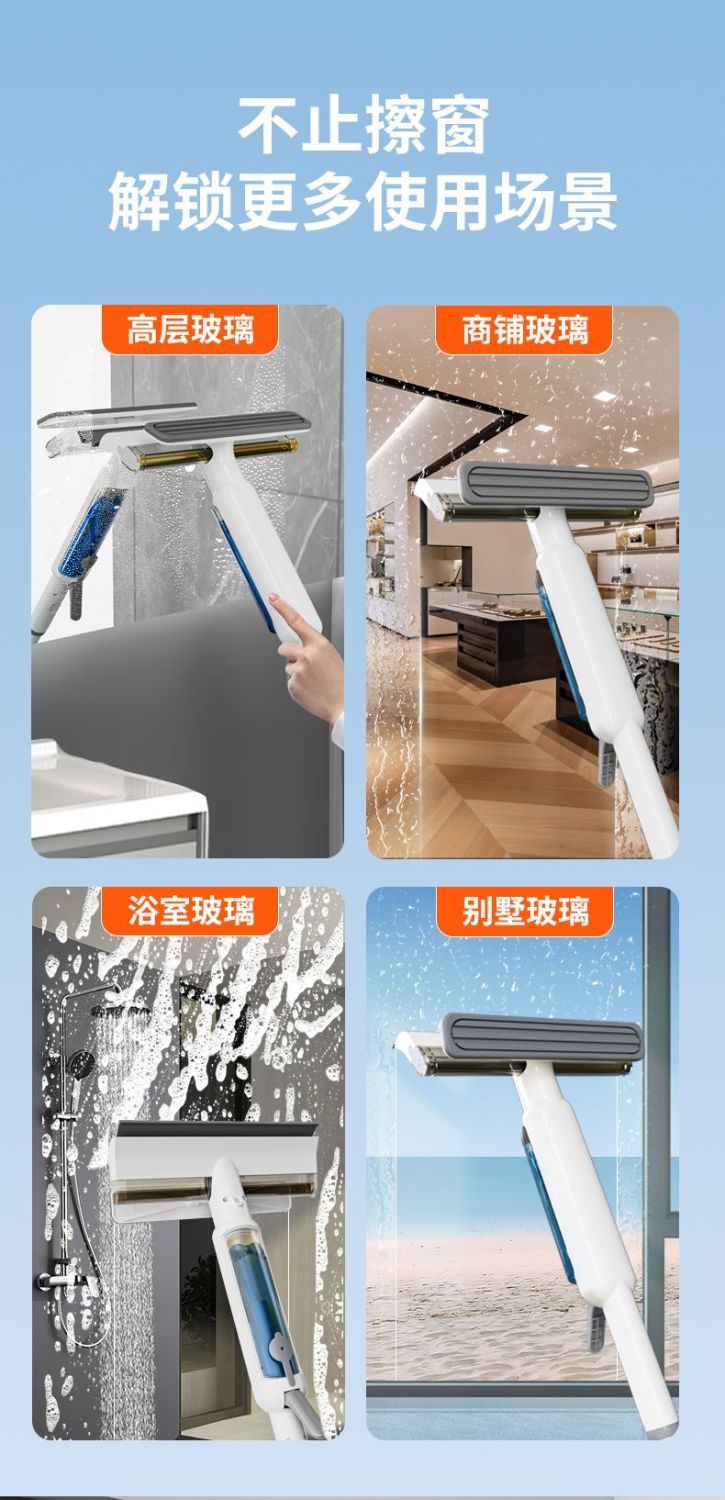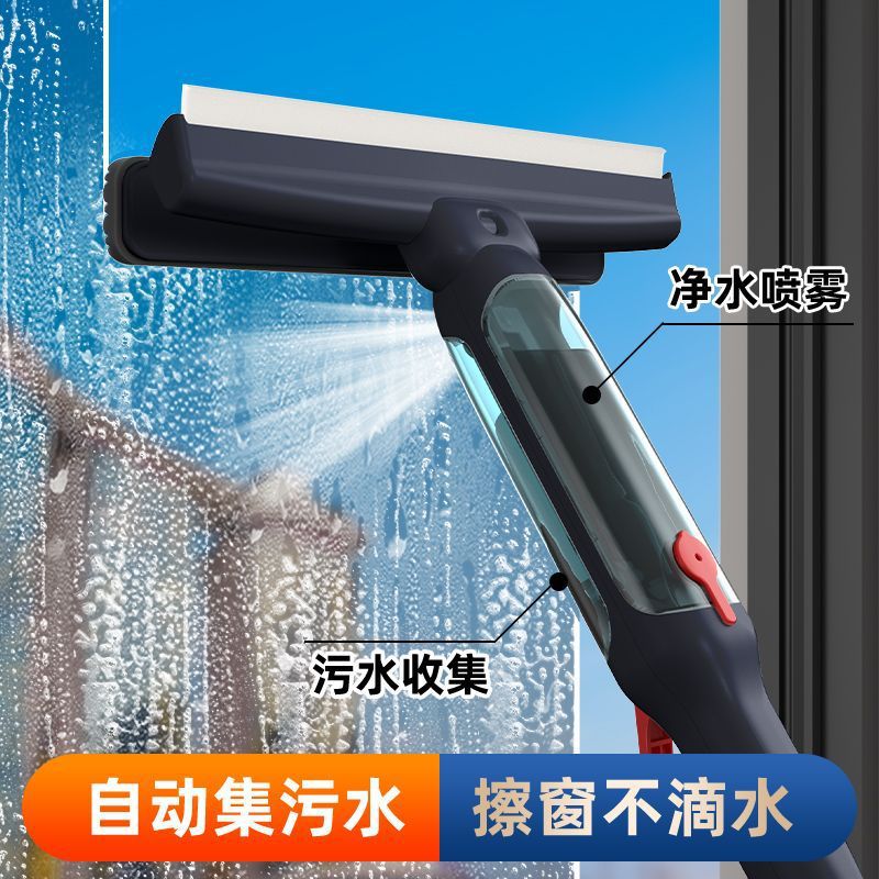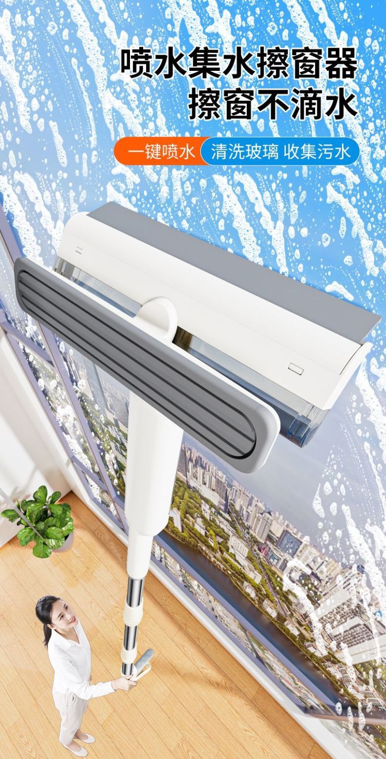 喷水式玻璃刷家用窗户内外高层伸缩专用清洁刮水器双面喷雾清洁器