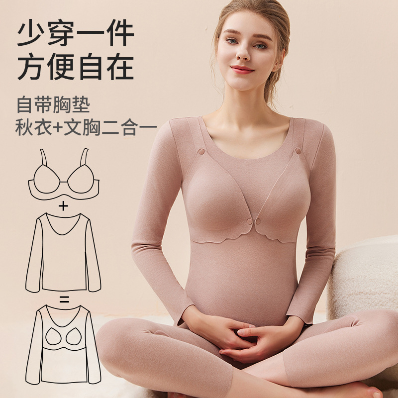 孕妇秋衣秋裤套装纯棉哺乳保暖内衣带胸垫孕期产后喂奶睡衣月子服