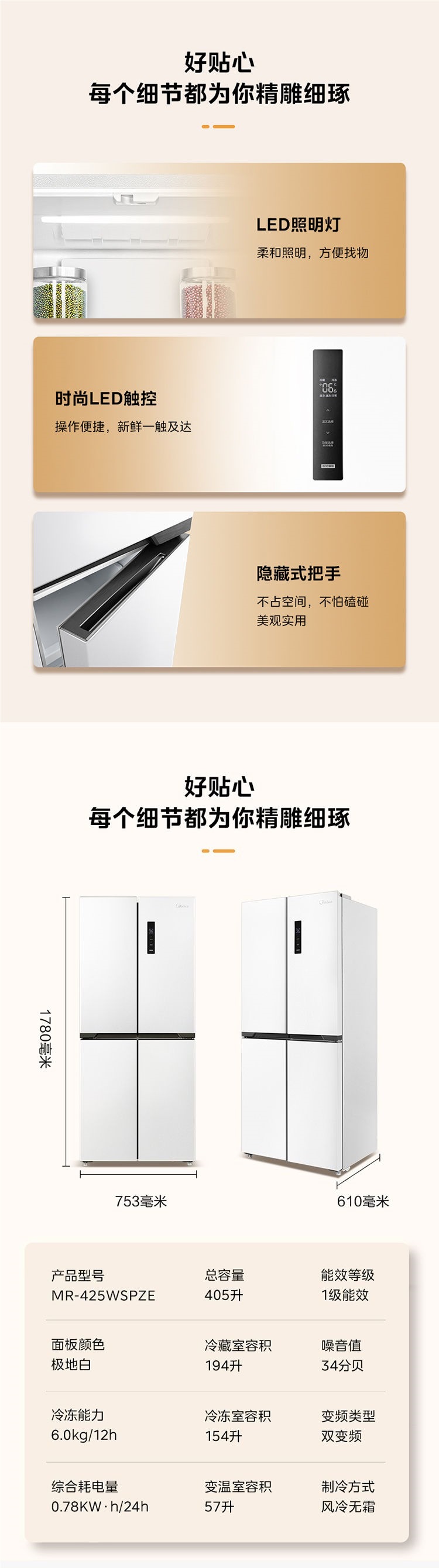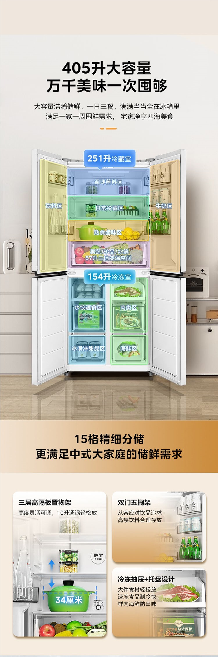 美425十字はドアを開けて61センチの本体の白い味のエネルギー効率の低音家庭用冷蔵庫に向かっている