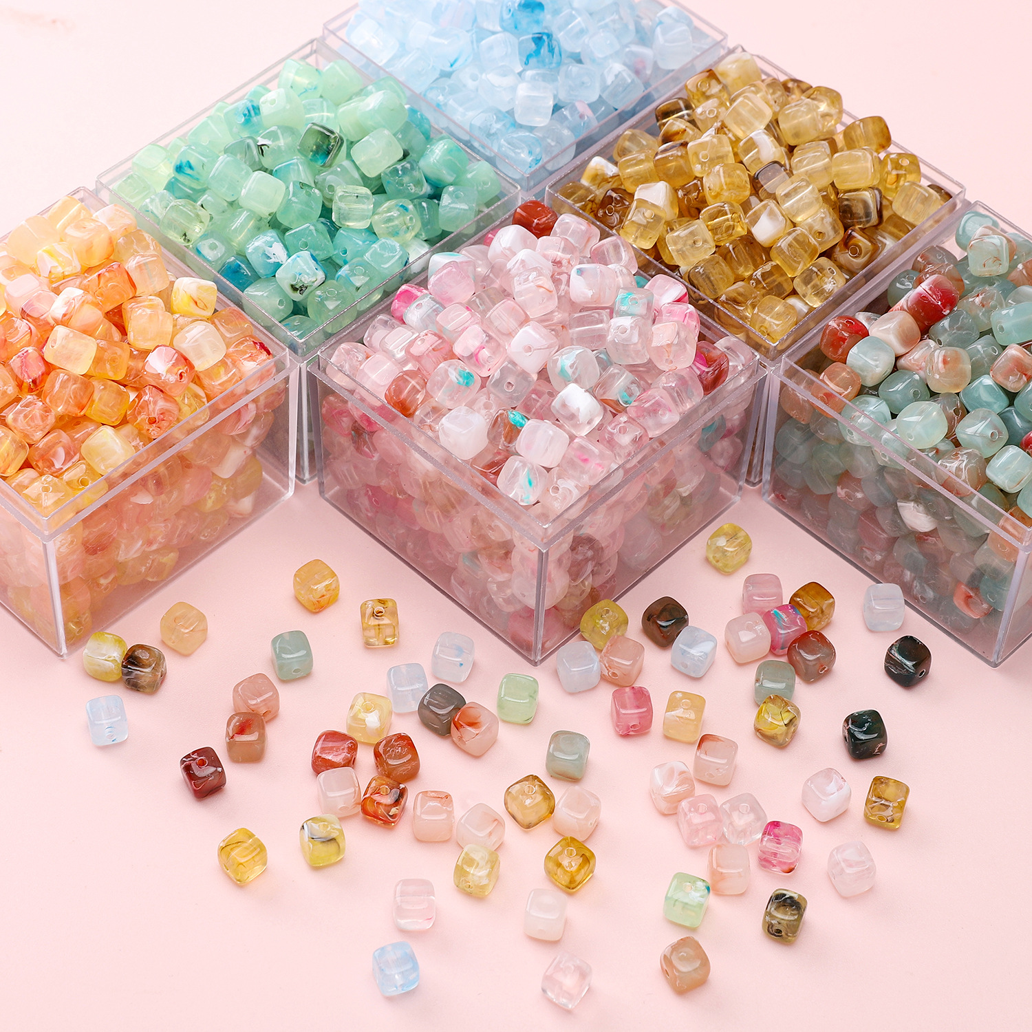【透明な2色の四角いビーズ】アクリルビーズ散珠手作りdiyビーズブレスレット材料手串部品
