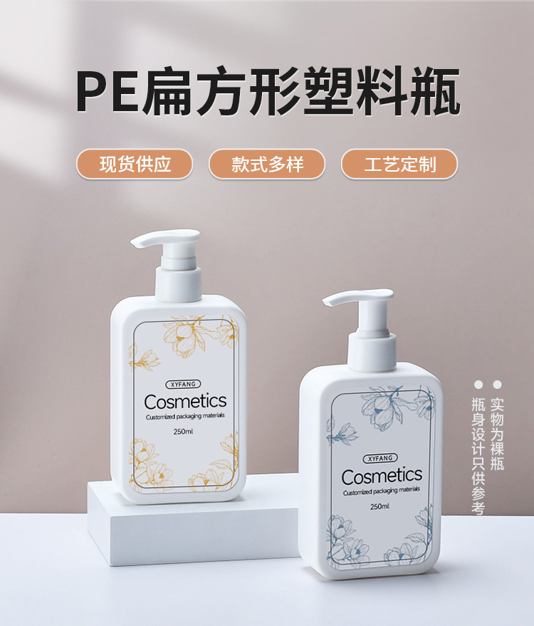 工場卸売250mlハンドクリームボトルHDPE白色フラットスクエアボディローションボトル高級感メンズシャンプーボトル