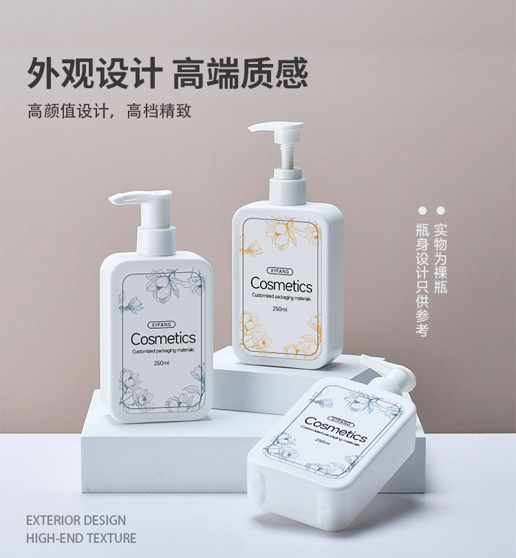 200ML250ML スクエアローションボトル ホワイトシャワージェル空ボトル プレスクレンザーボトル シャンプーボトル