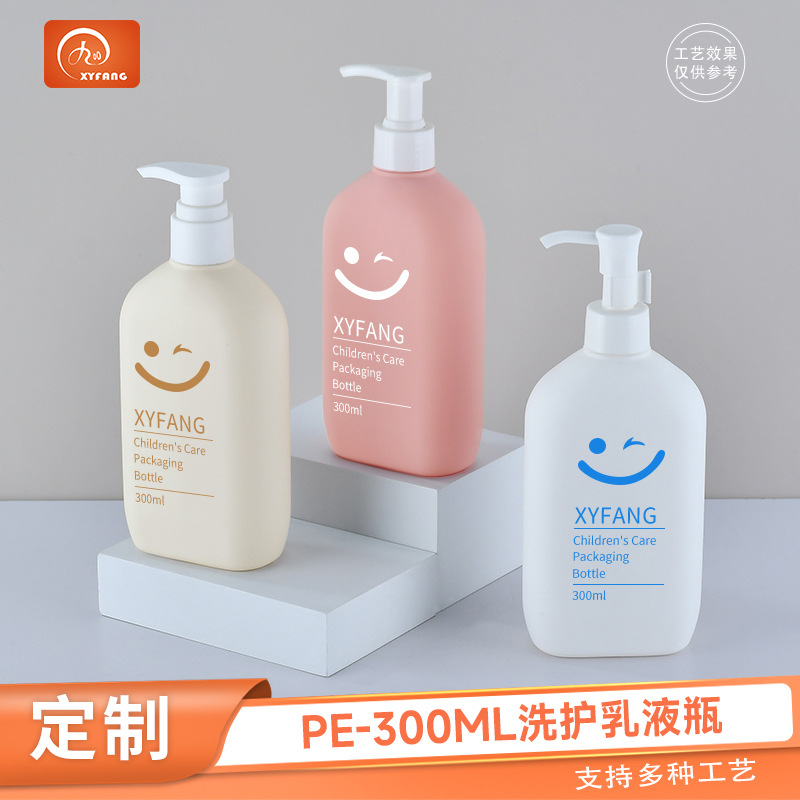 カスタムメイドの高級フラット型ローションボトルHDPEハンドクリーム包装材プラスチックボトル高級300ml子供用シャンプーボトル