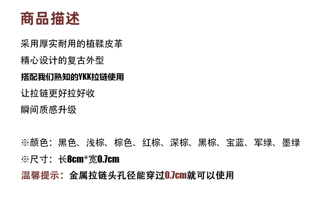 皮革拉链头皮拉片 箱包服装五金挂件多色皮革配件服装辅料