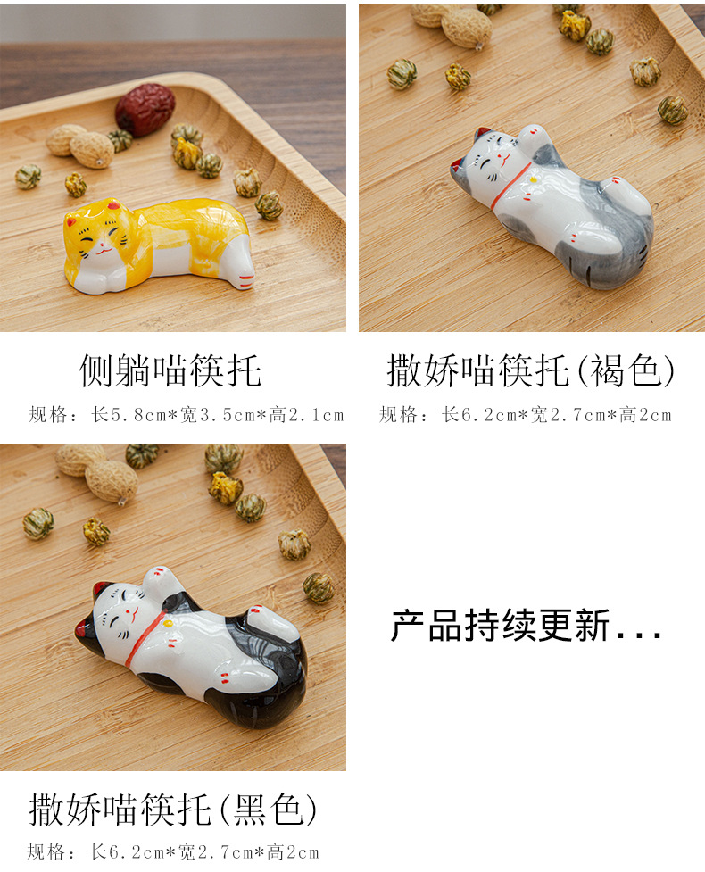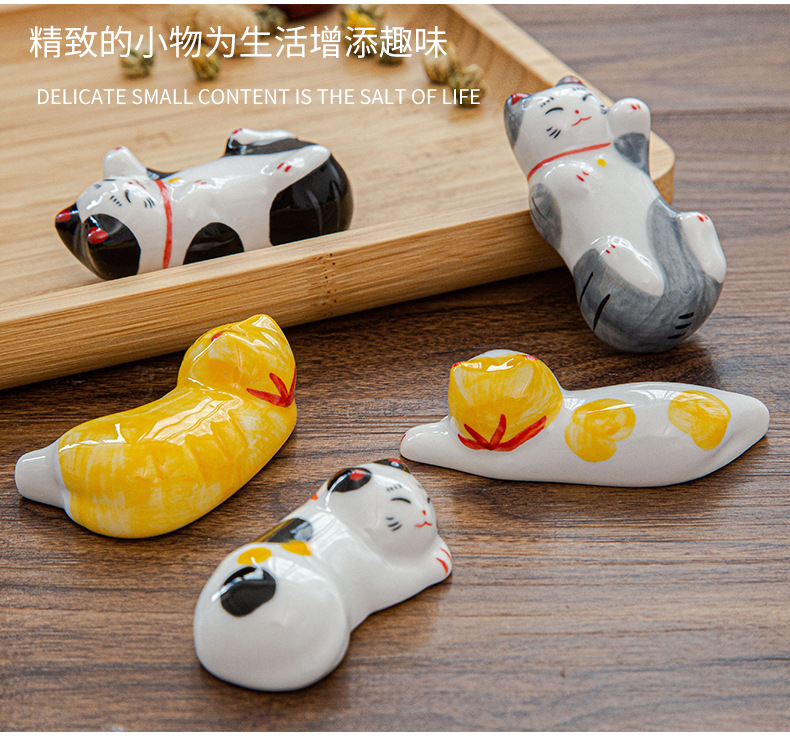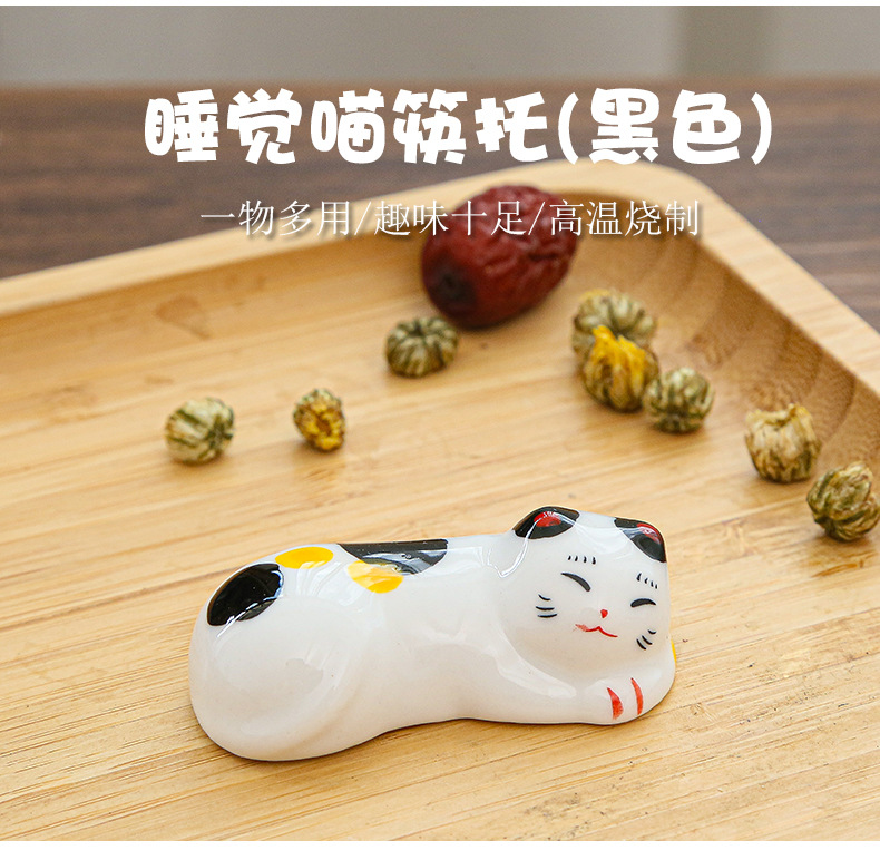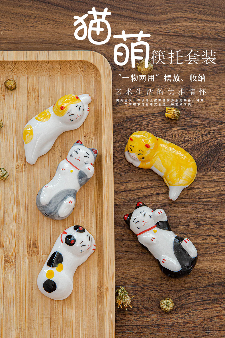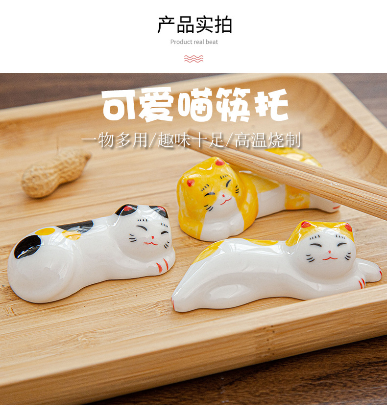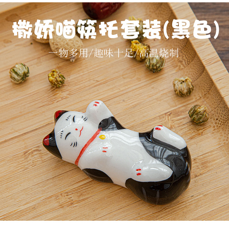 日本式招き猫陶磁器箸棚釉薬下彩子猫置物創造筆托箸棚家庭食卓食器
