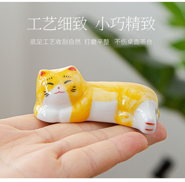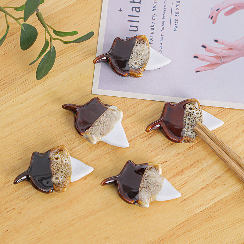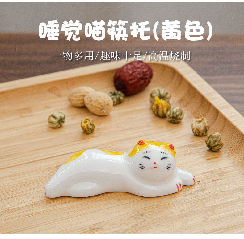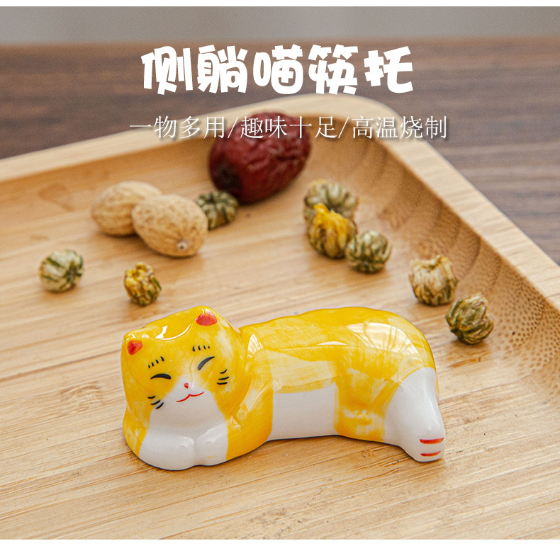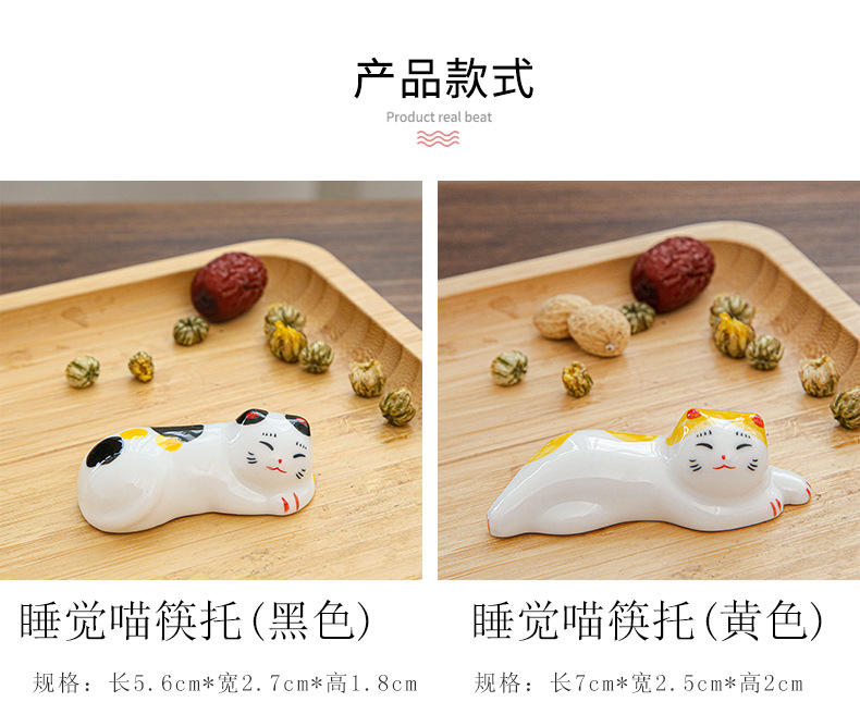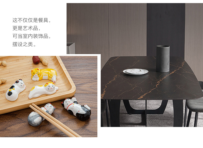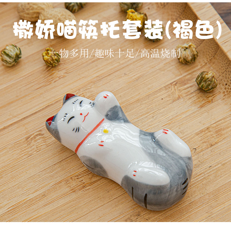 日本式招き猫陶磁器箸棚釉薬下彩子猫置物創造筆托箸棚家庭食卓食器