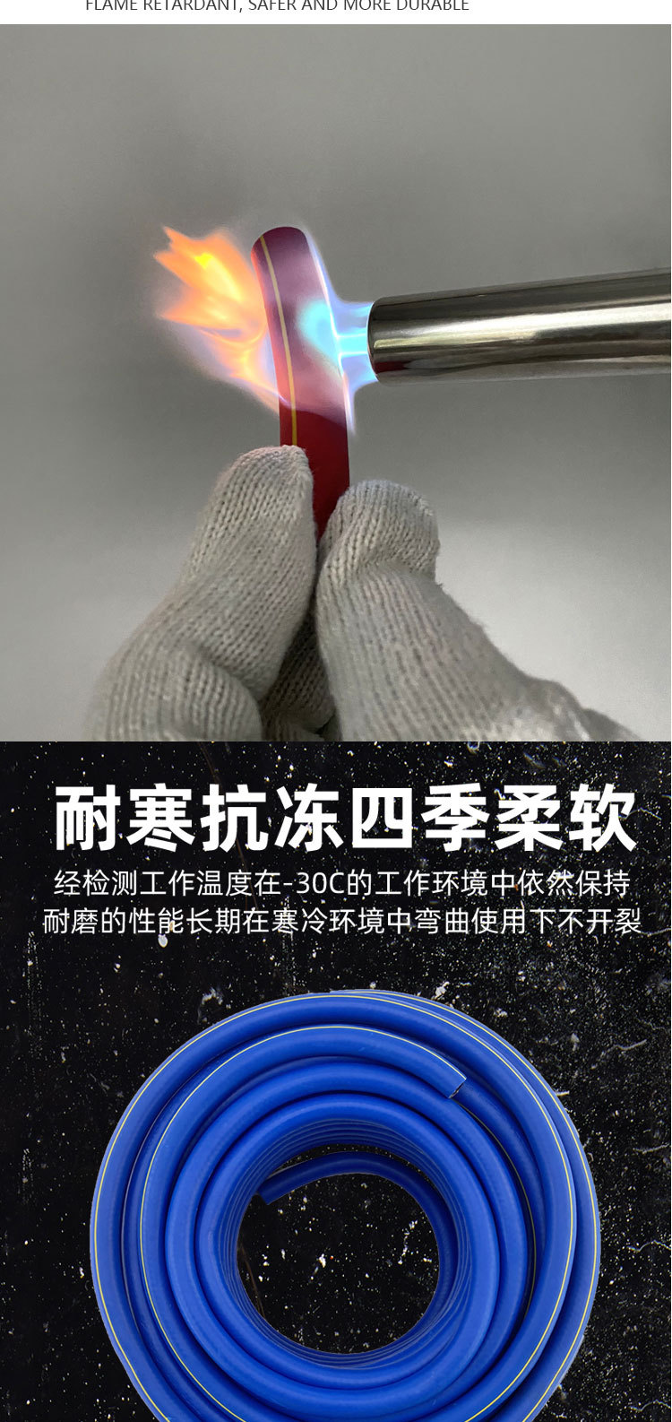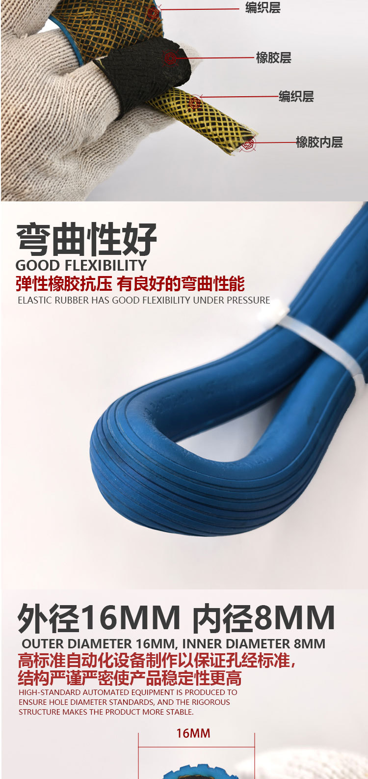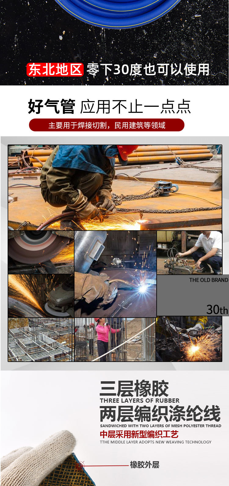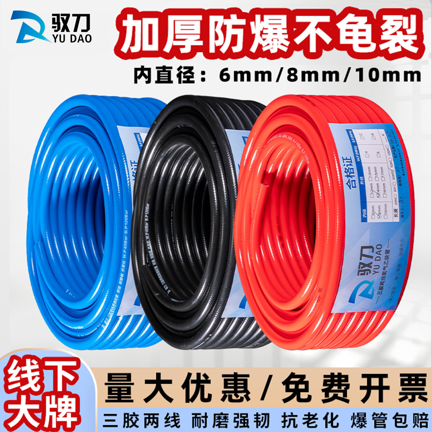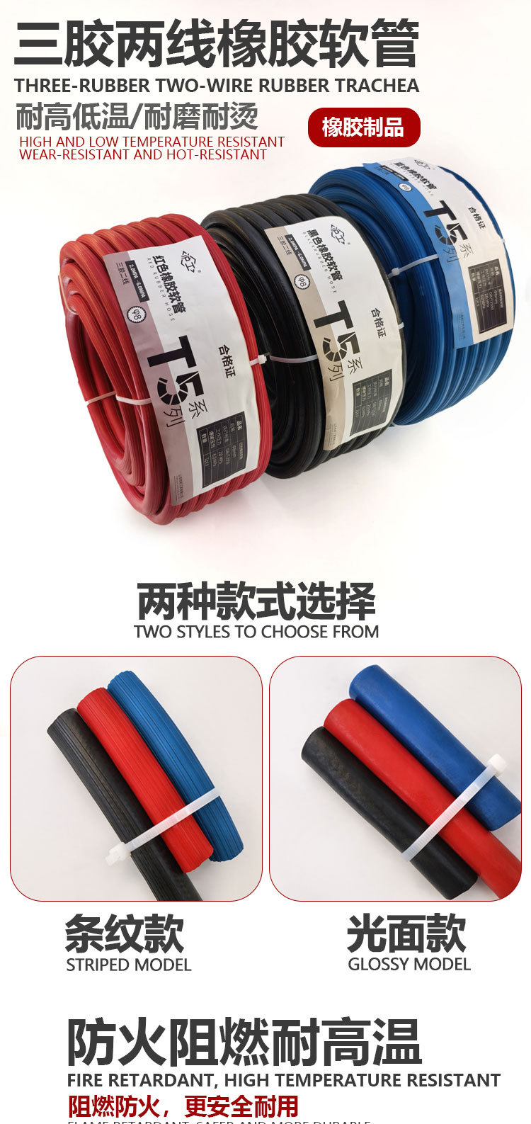 防爆酸素気管アセチレンホース8mm光沢面耐高圧工業ゴム管赤青黒管三ゴム二線管