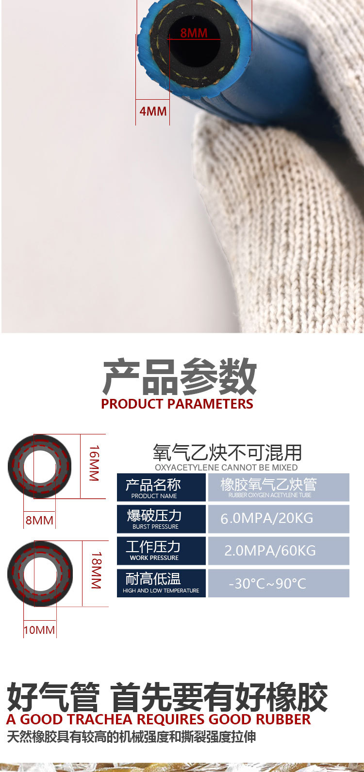 卸売り二ゴム一線酸素バンドX1シリーズ8mm防爆高圧ゴム管溶接切断ホース酸素アセチレン管
