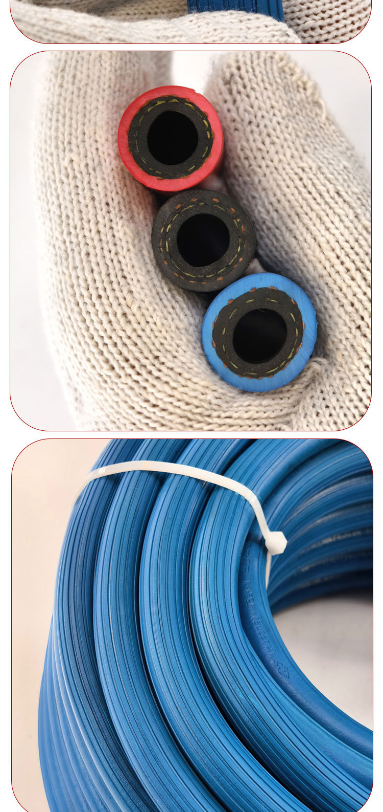 防爆酸素アセチレンプロパンホース8mm赤青黒光沢面耐高圧工業ゴム管三ゴム二線管