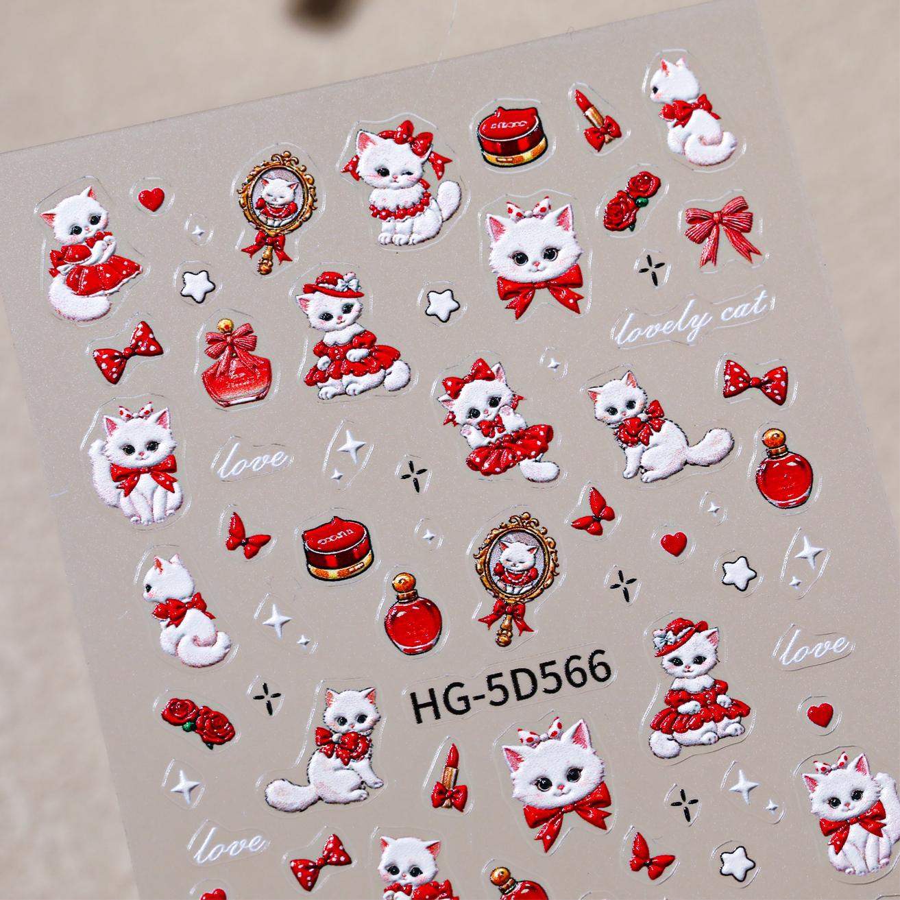 原创可爱白猫美甲贴纸5D浮雕立体萌系小白猫diy指甲贴纸饰品 HG款