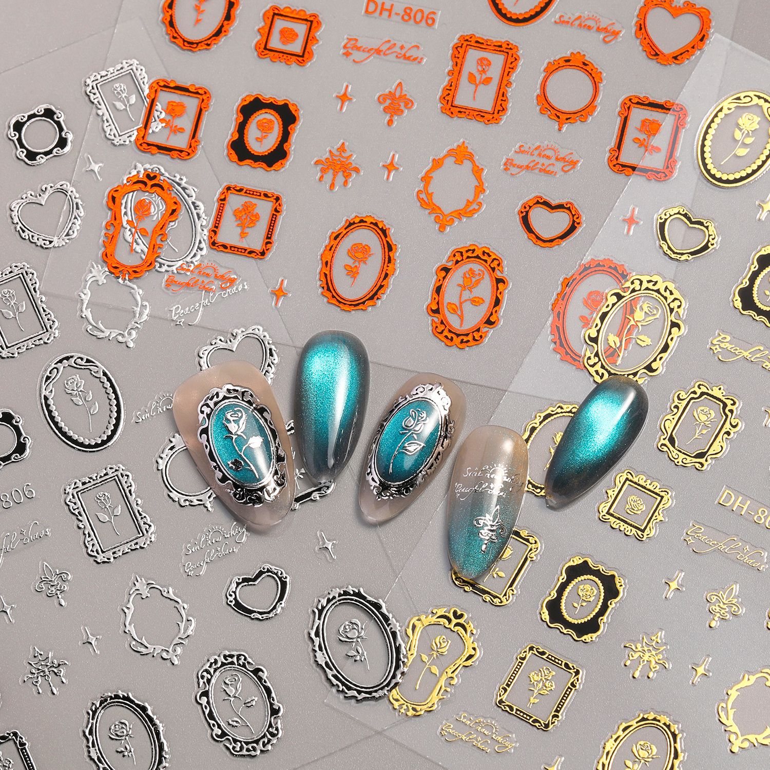 ヴィンテージ風油絵額縁ネイルステッカー 平面粘着剤付き ヨーロッパ風ライトラグジュアリー油絵額縁 DIYネイルステッカー アクセサリー DHタイプ