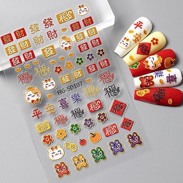 新春暴富财神美甲贴纸5D浮雕新年发财祝福文字diy指甲贴纸 HG款