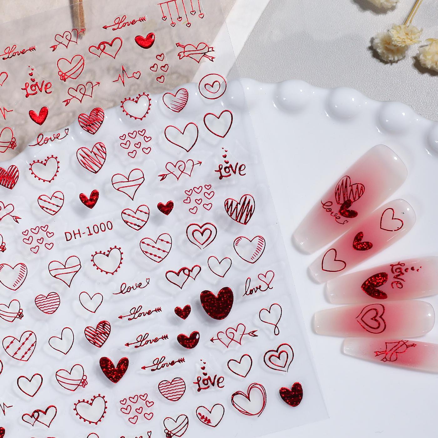 镂空涂鸦爱心美甲贴纸平面手绘风镭射爱心diy指甲贴纸饰品 DH1000