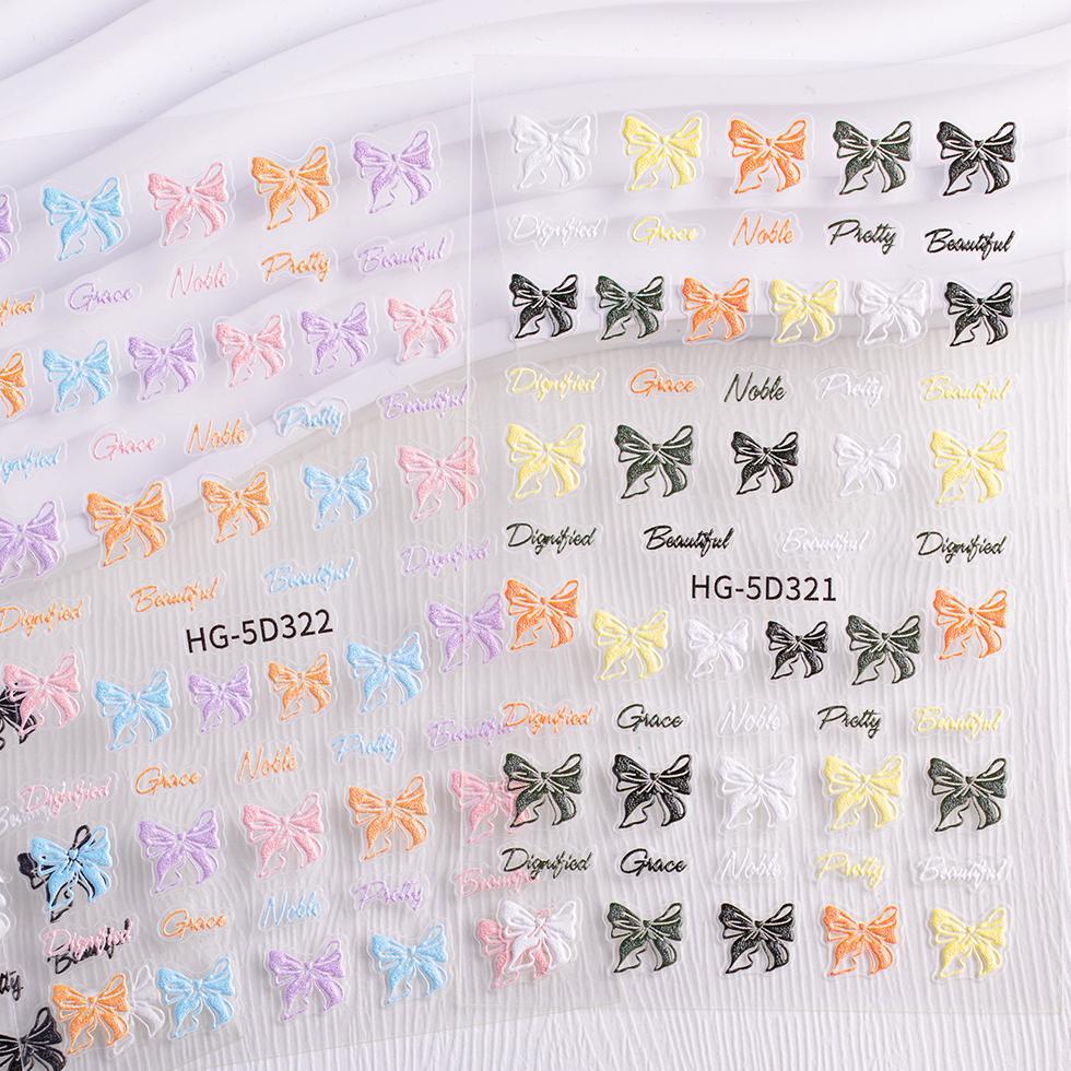 白黒リボンネイルステッカー 5D立体カラーリボンDIYネイルステッカー装飾品 HGタイプ