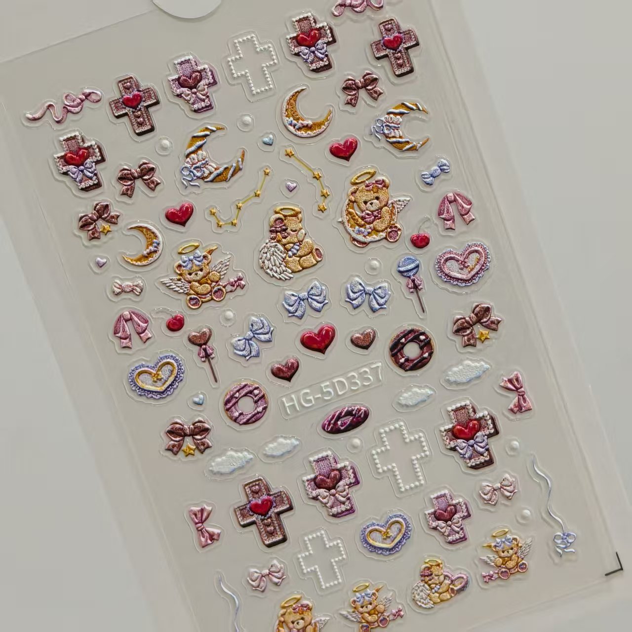 可爱天使小熊美甲贴纸5D浮雕立体萌系糖果小熊diy指甲贴纸 HG款
