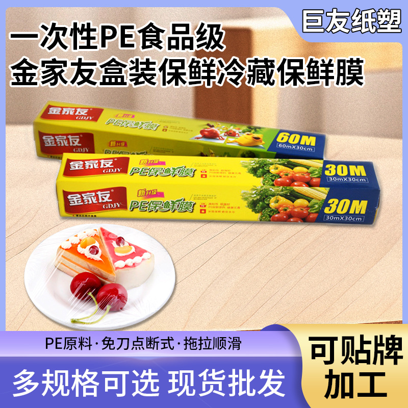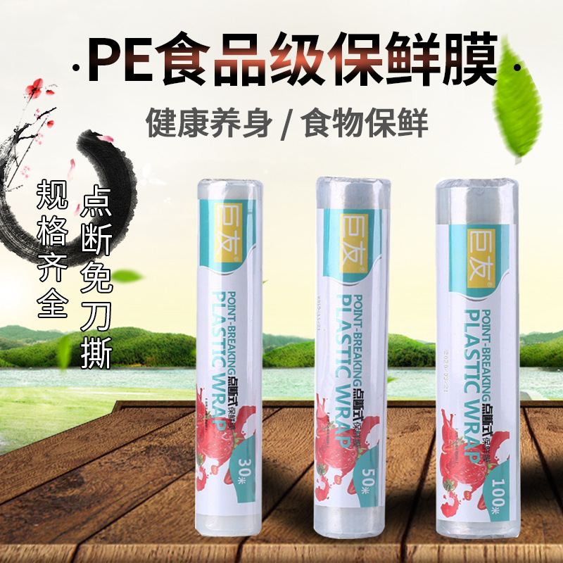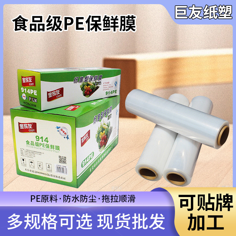 メーカースポット使い捨てPEラップフィルム卸売り簡易家庭用大巻食品級耐高温冷蔵庫ラップフィルム