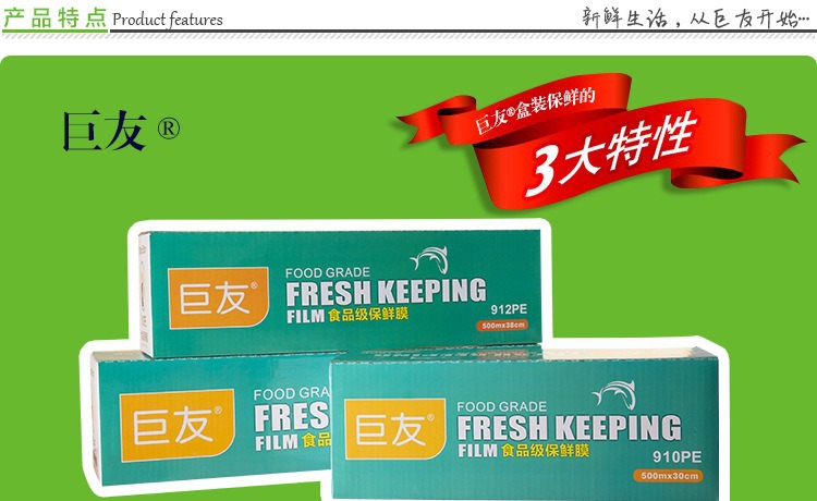 一次性滑刀式保鲜膜食品级免手撕PE透明家用厨房饭菜塑料保鲜膜