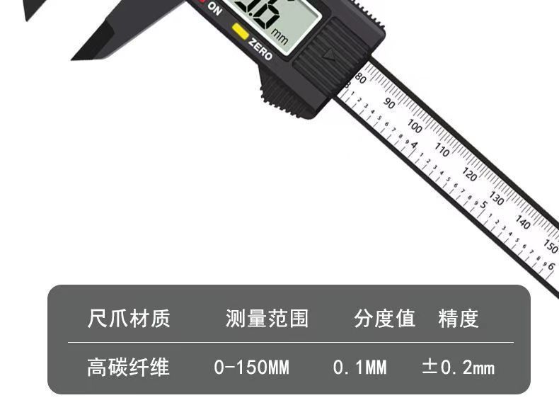 デジタル表示キャリパー電子ノギス0-150mm強度エンジニアリングプラスチックPA66ナイロン材料キャリパー