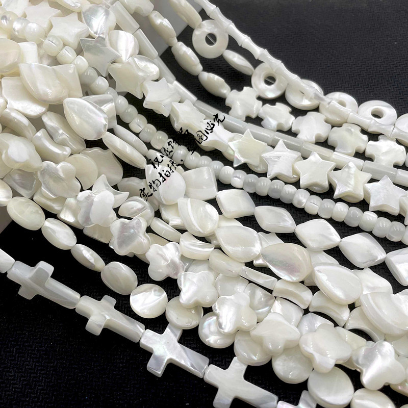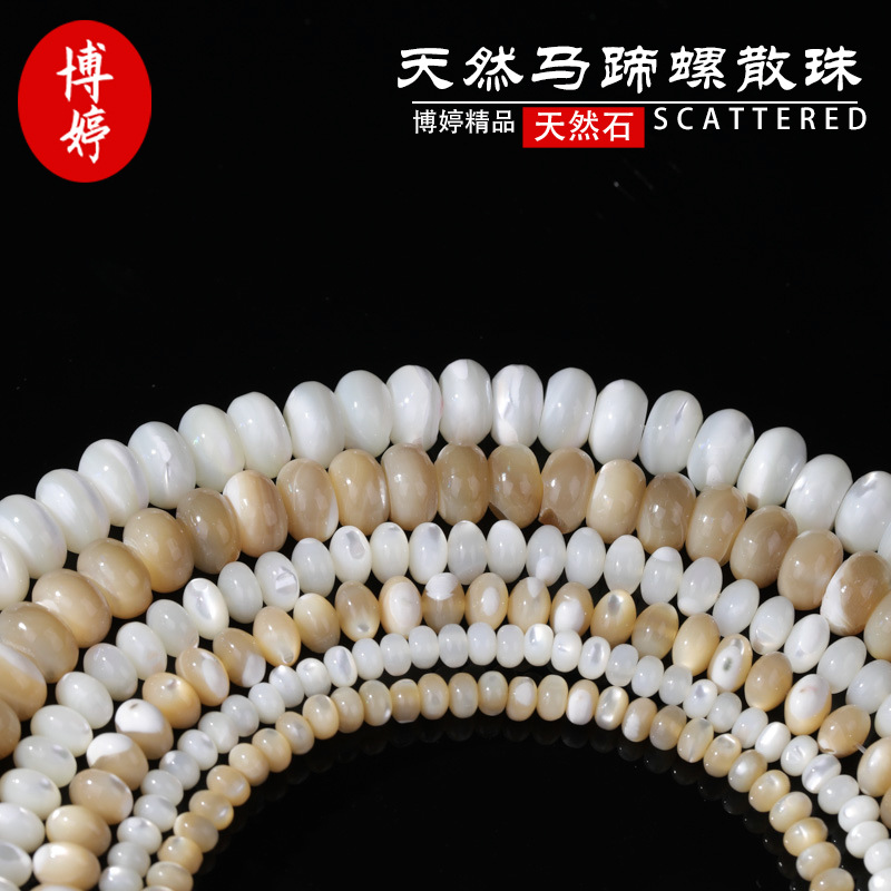 天然马蹄螺贝壳隔片散珠diy饰品配件白色本色贝壳圆片算盘隔珠