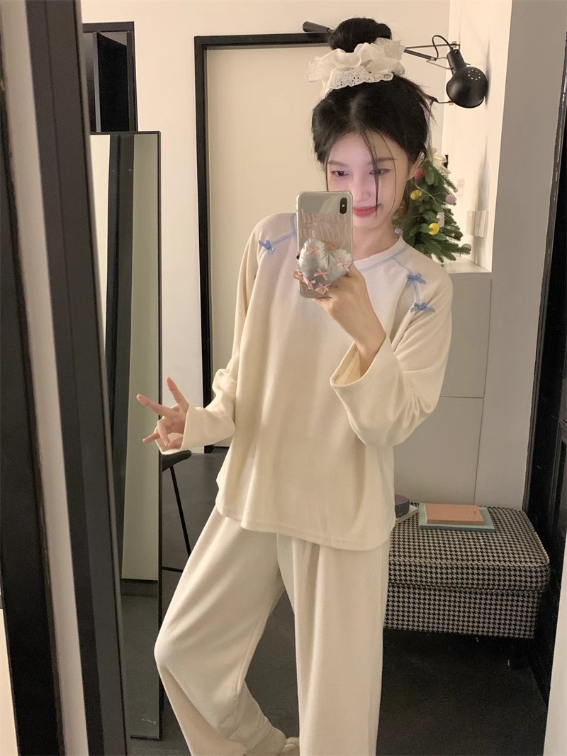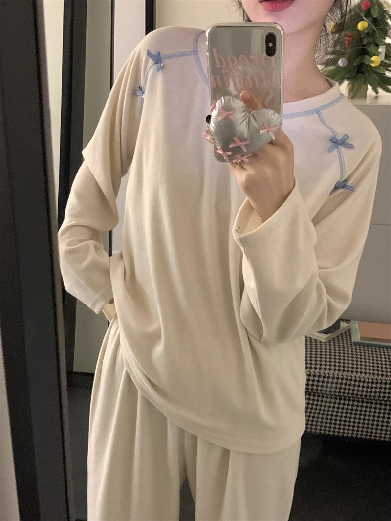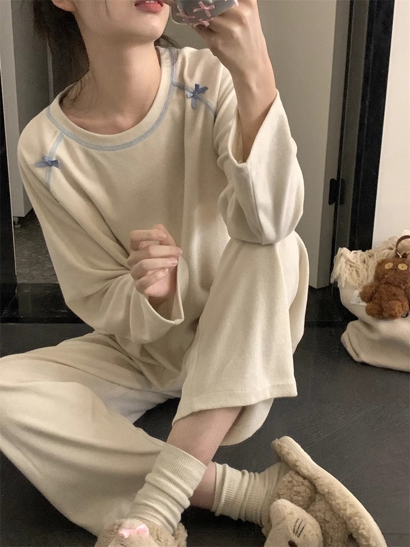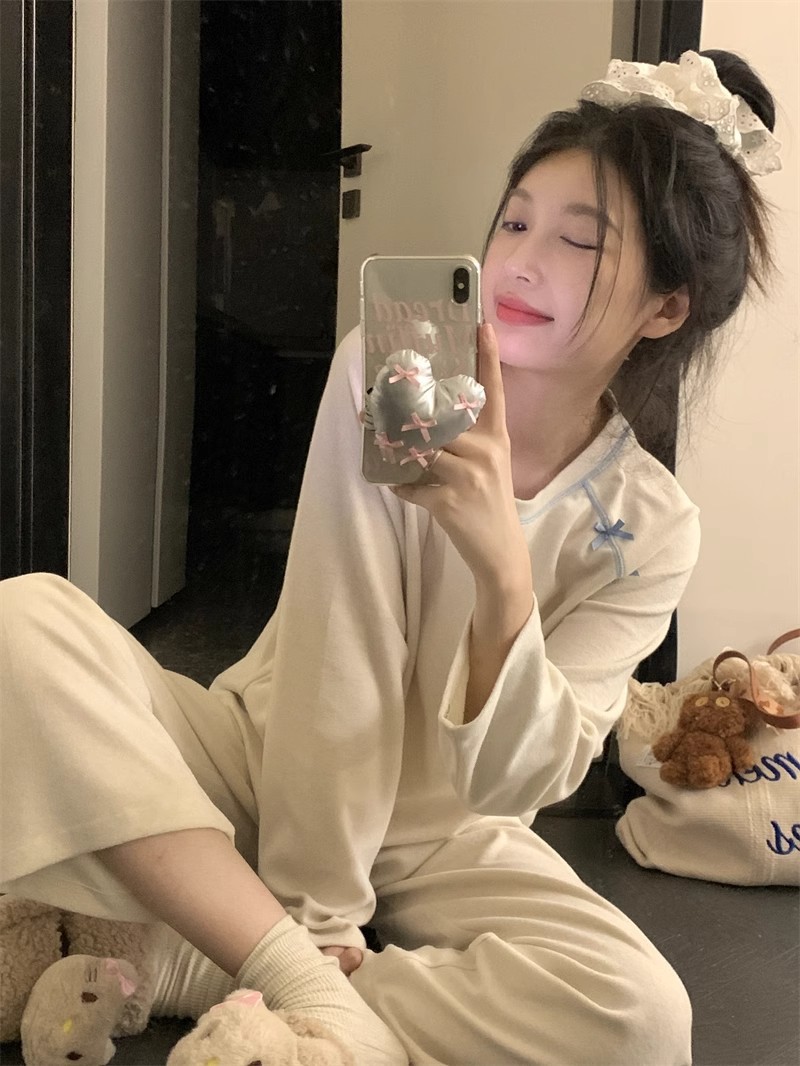2025年春秋新作衝突色蝶結びネットレッドins風韓国版シンプルで甘いパジャマ女性ホームウェア
