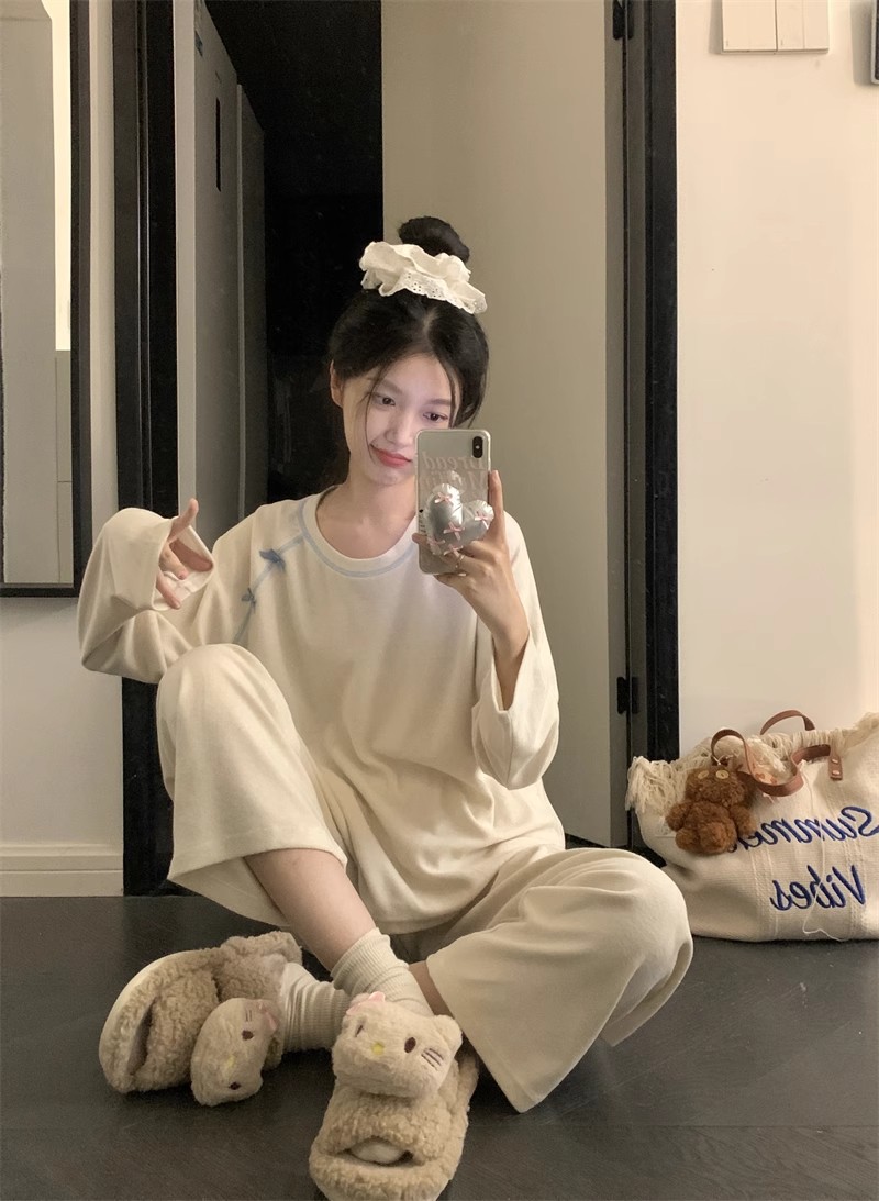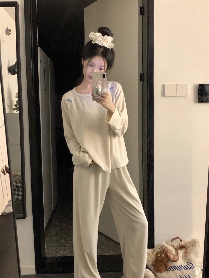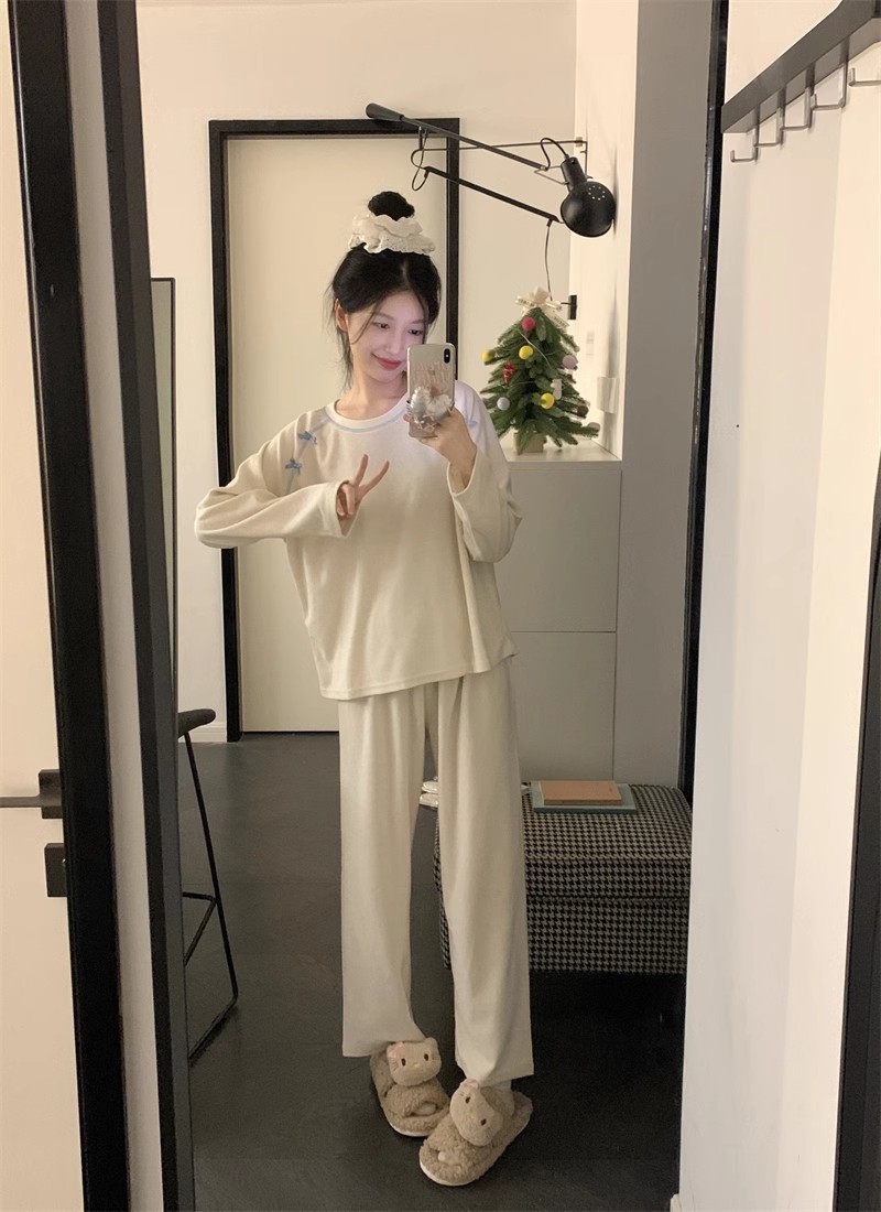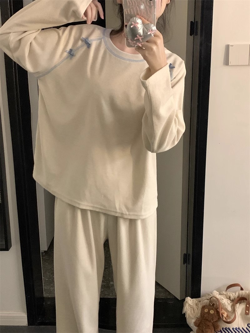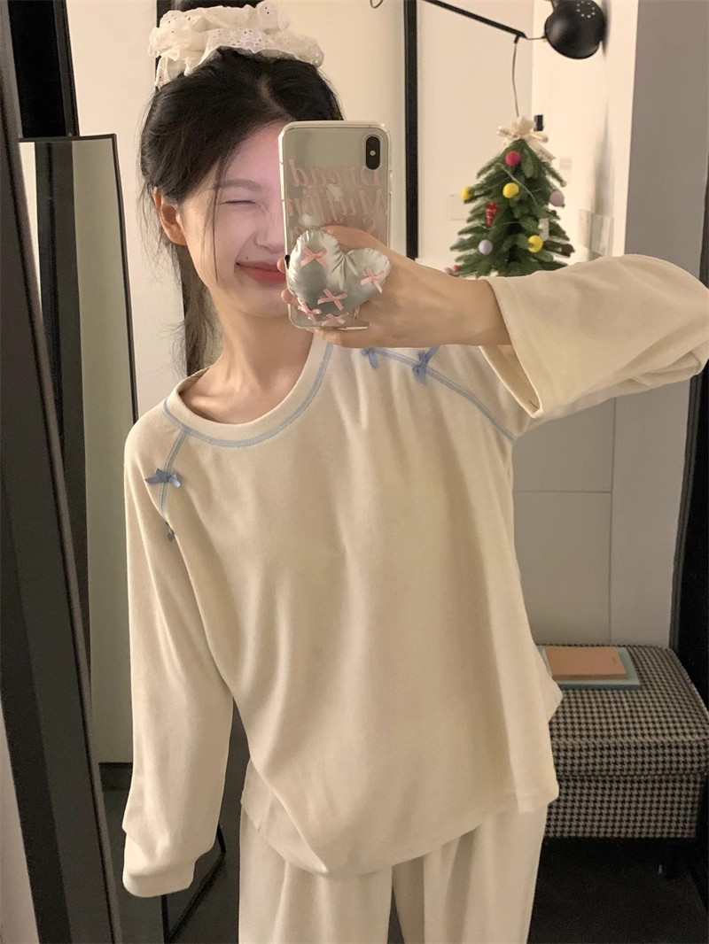 2024冬の新型韓国版シンプルで甘いネットレッドins風少女青辺徳絨毛パジャマ女性の家服