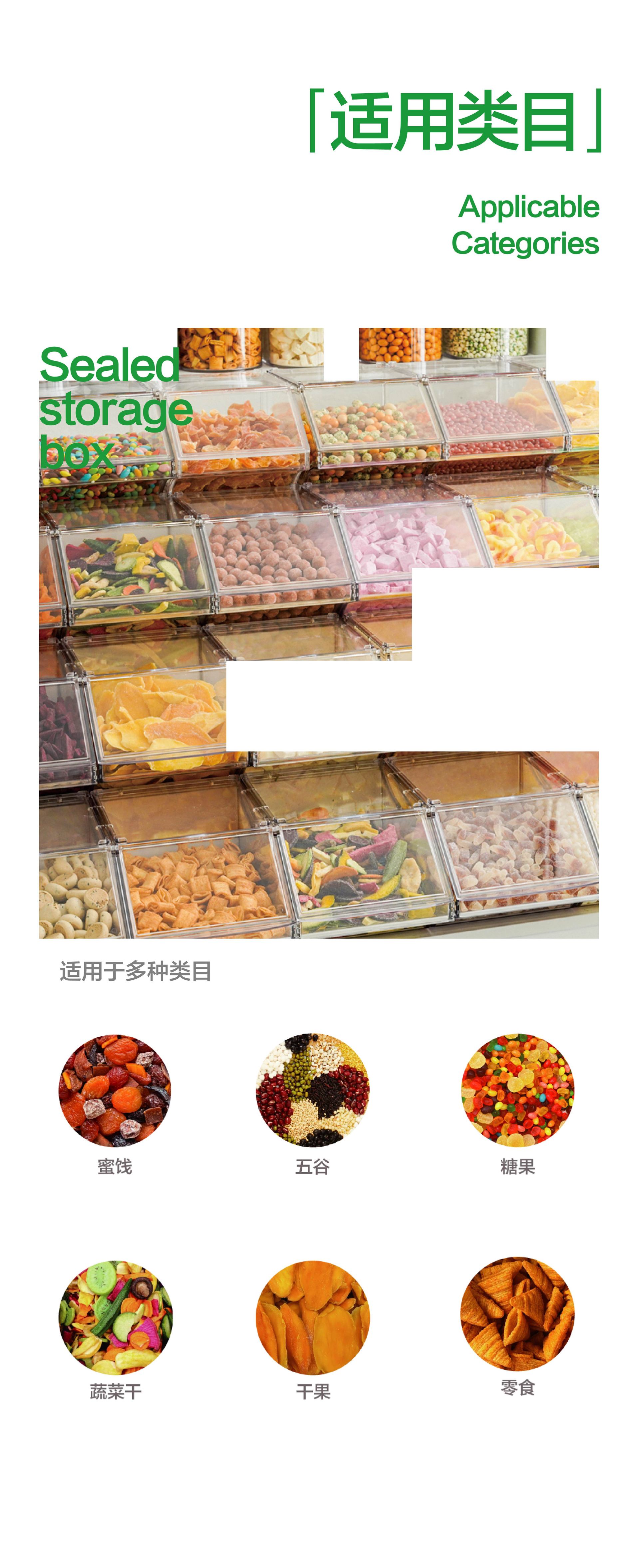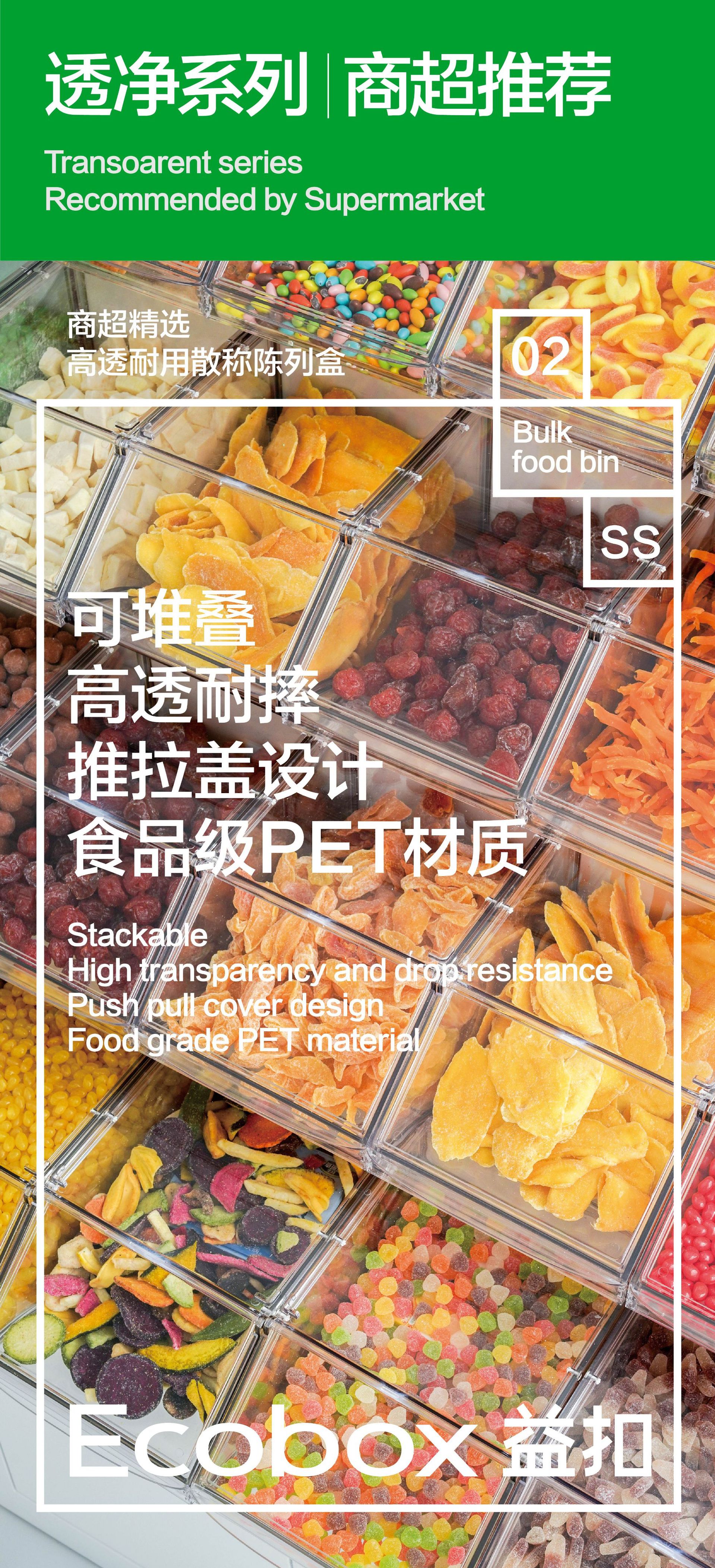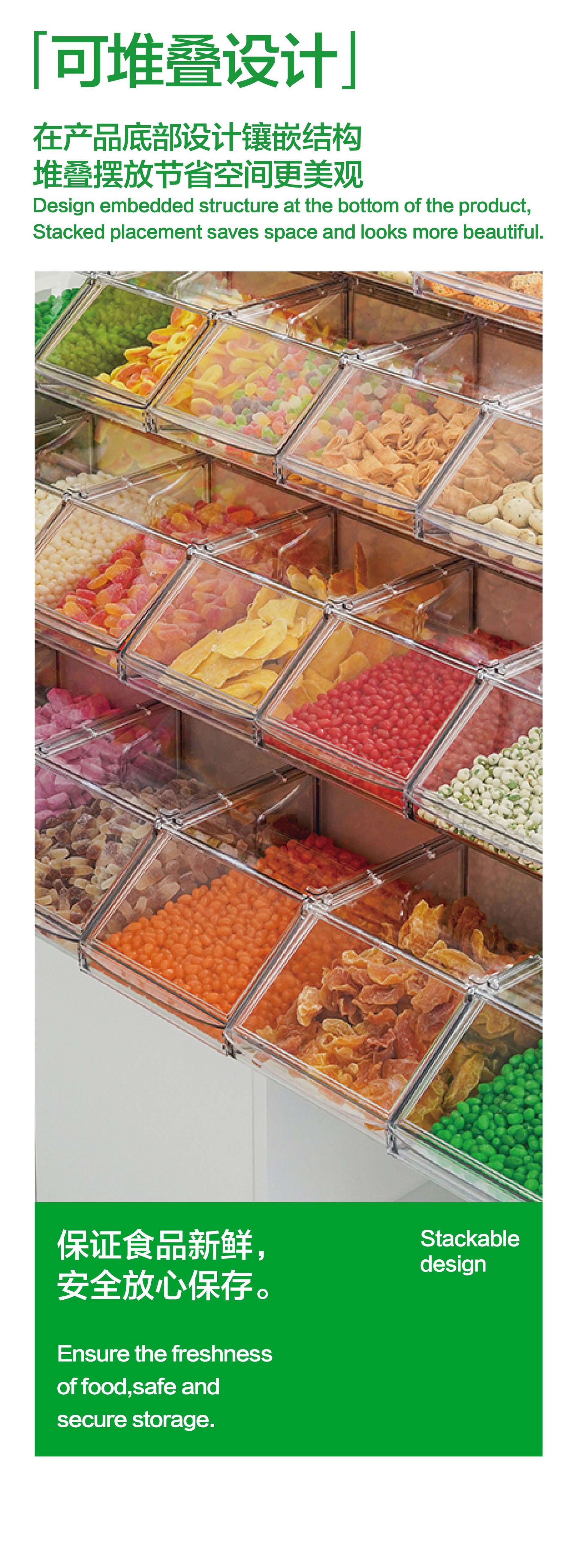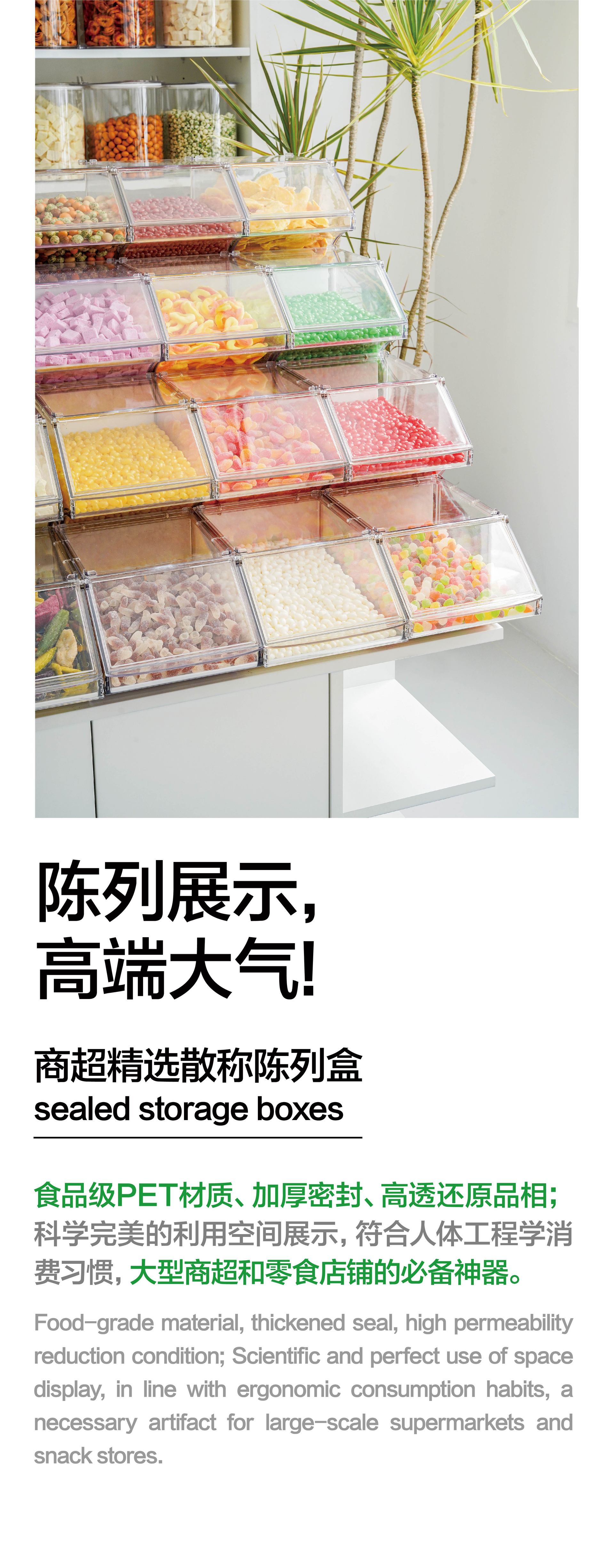 スーパーマーケット陳列用ディスプレイボックス キャンディー、砂糖漬け、ドライフルーツ用 引き出し式透明プラスチック製スナック・食品ボックス 密閉・開口タイプ