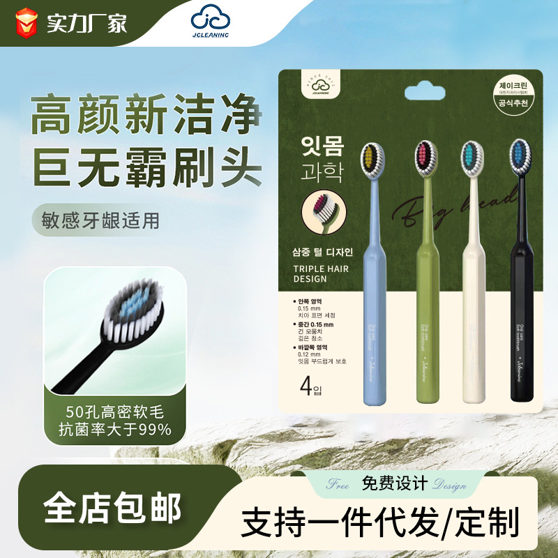 新款韩国软毛牙刷山型成人50孔高密抑菌清洁牙龈罗马柱牙刷工厂