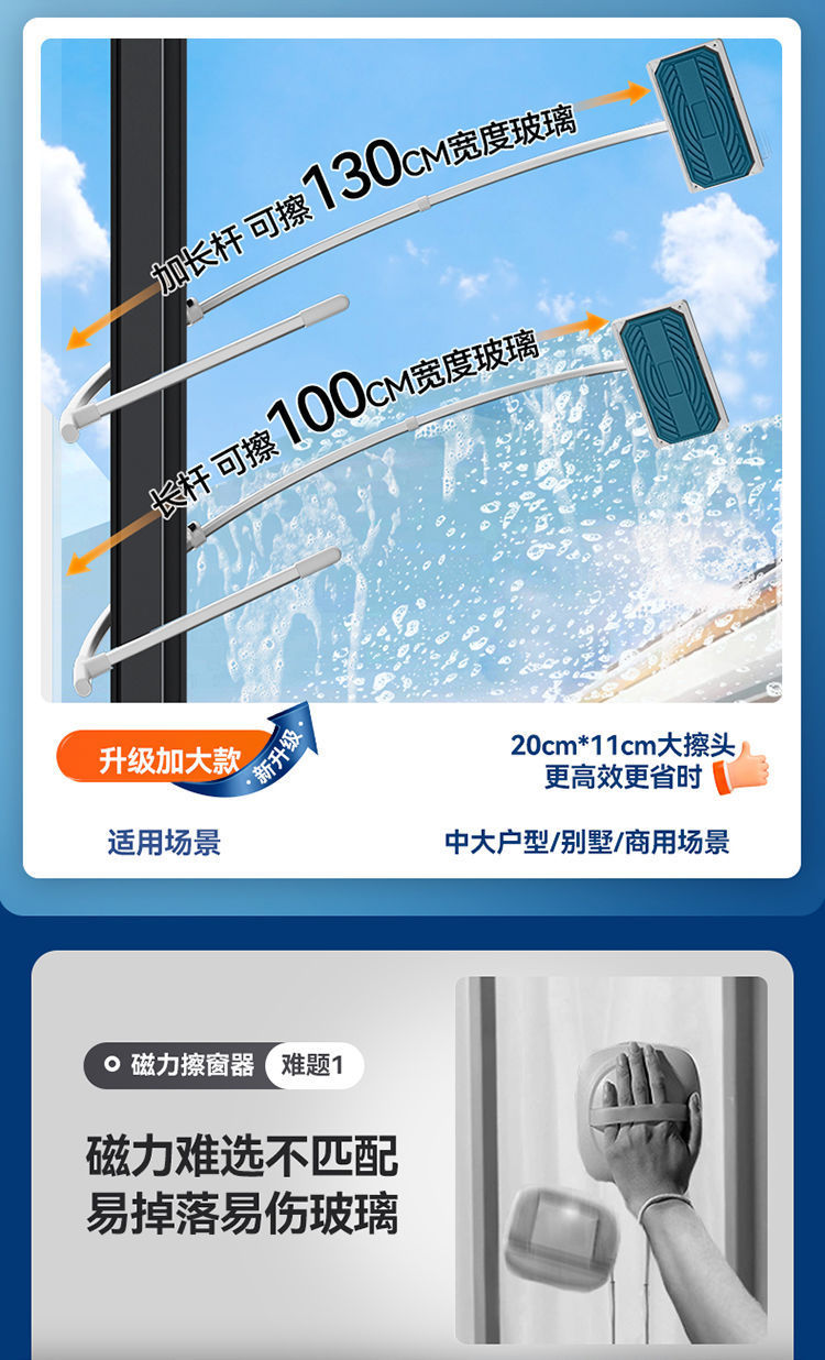 居家日用高层擦玻璃神器外窗双面擦家用玻璃擦刮刀保洁专用刮水器