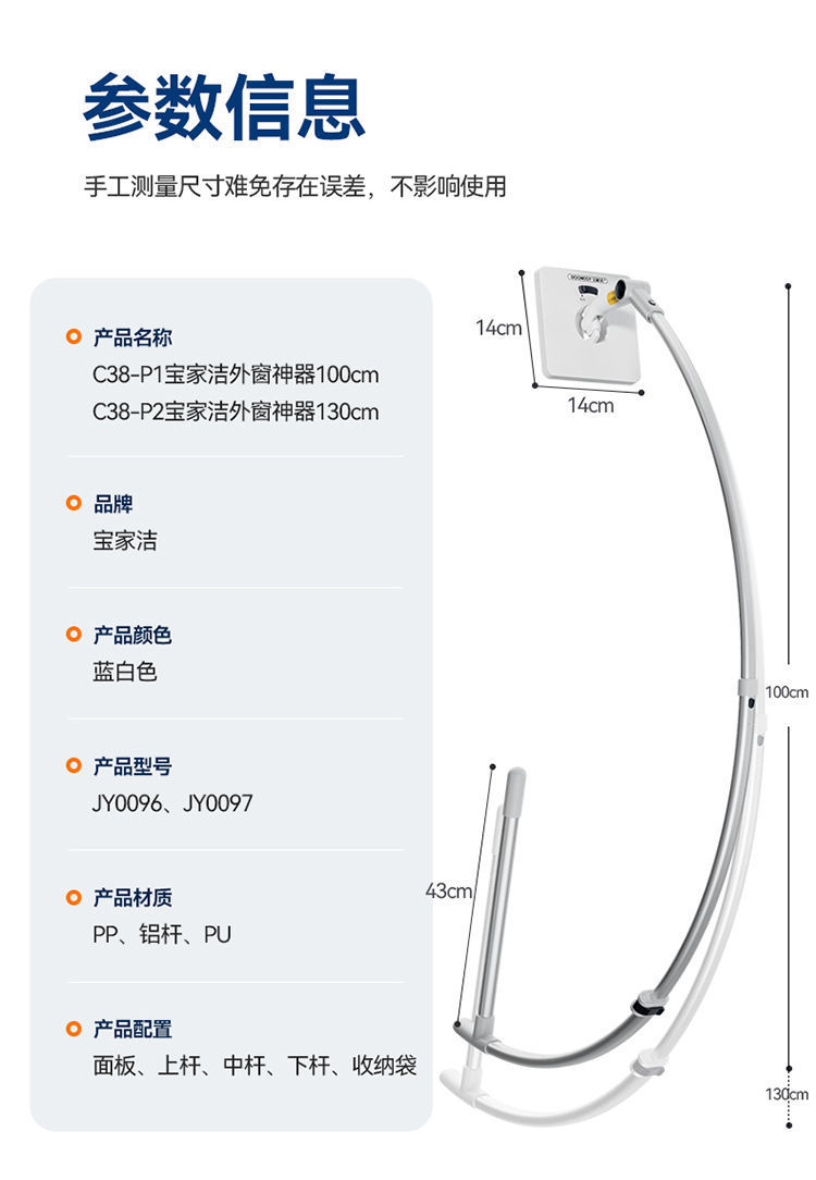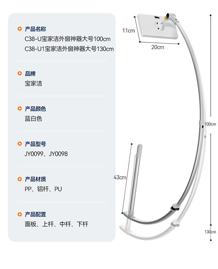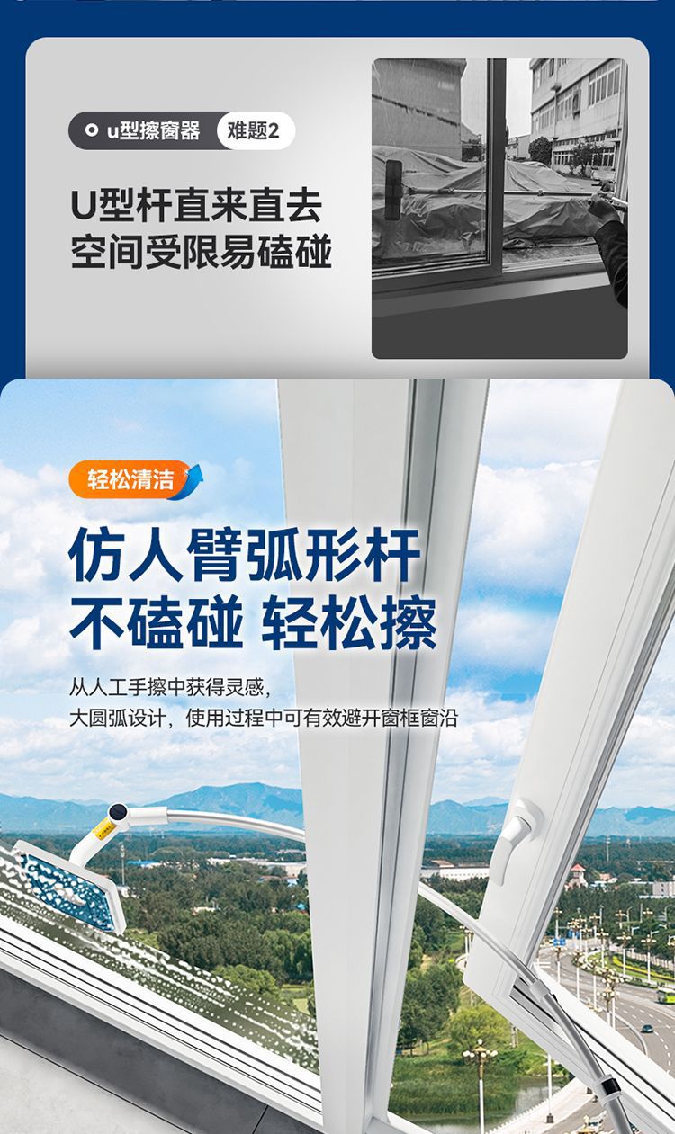 宝家洁擦玻璃神器窗外清洁手持外窗家用高层高楼弧形仿人臂擦窗器