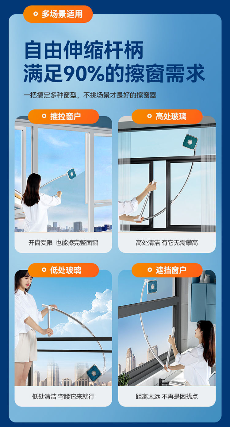 2025新型家庭用窓拭き洗浄ガラス高層窓外家政清掃道具