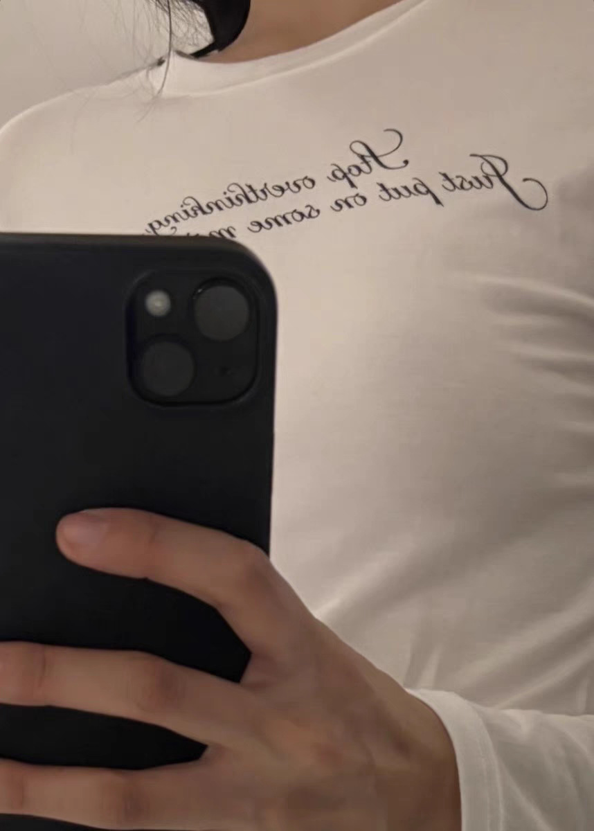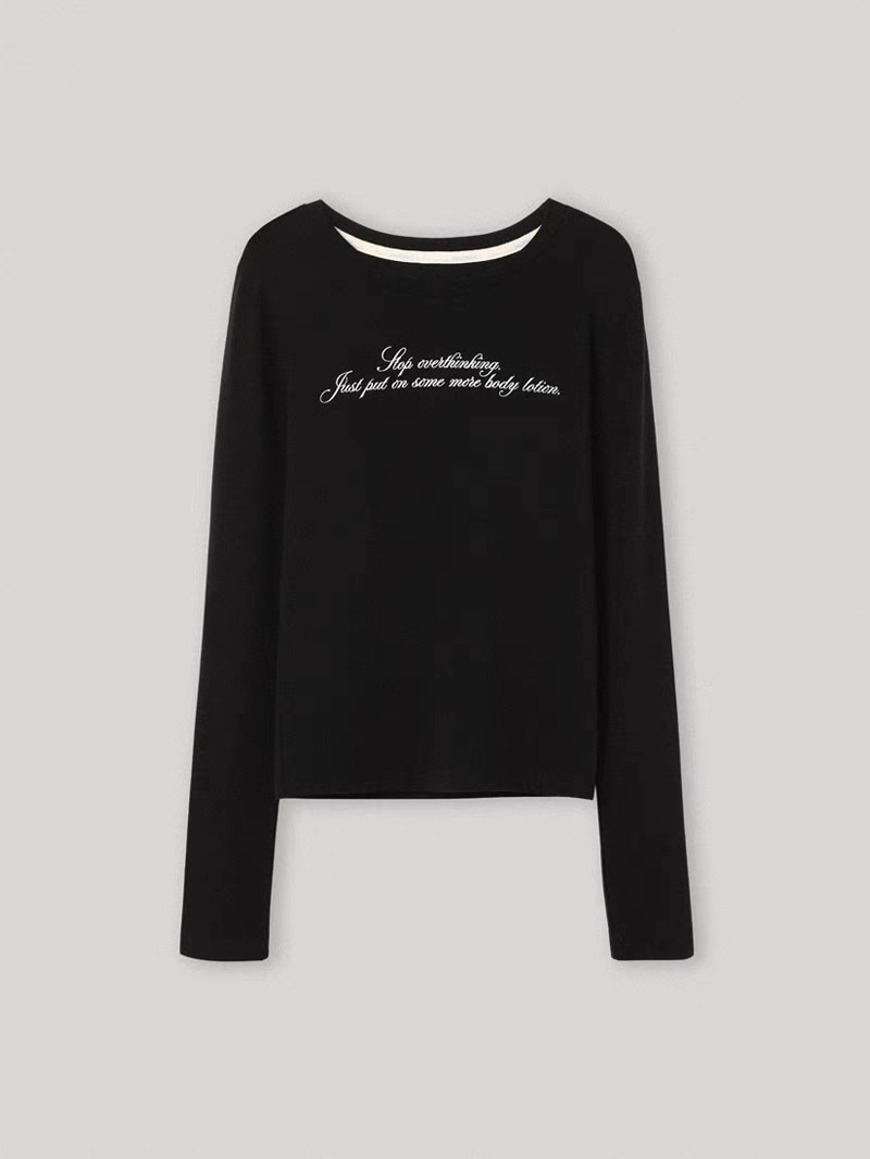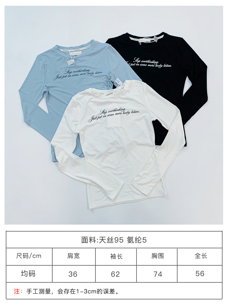 ovinsyang 圆领长袖字母印花T恤秋季新款修身显瘦百搭外穿打底衫