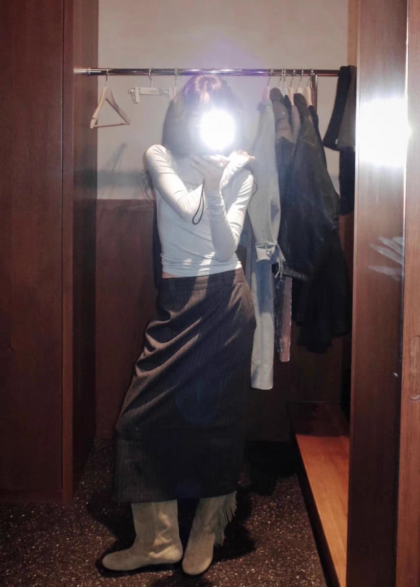 韩国小众GROVE 25秋季新款 FONDS 基础百搭 标签圆领长袖T恤女潮