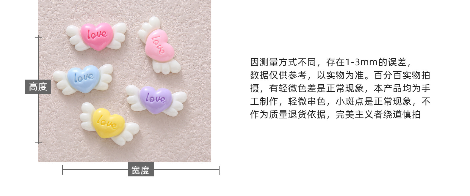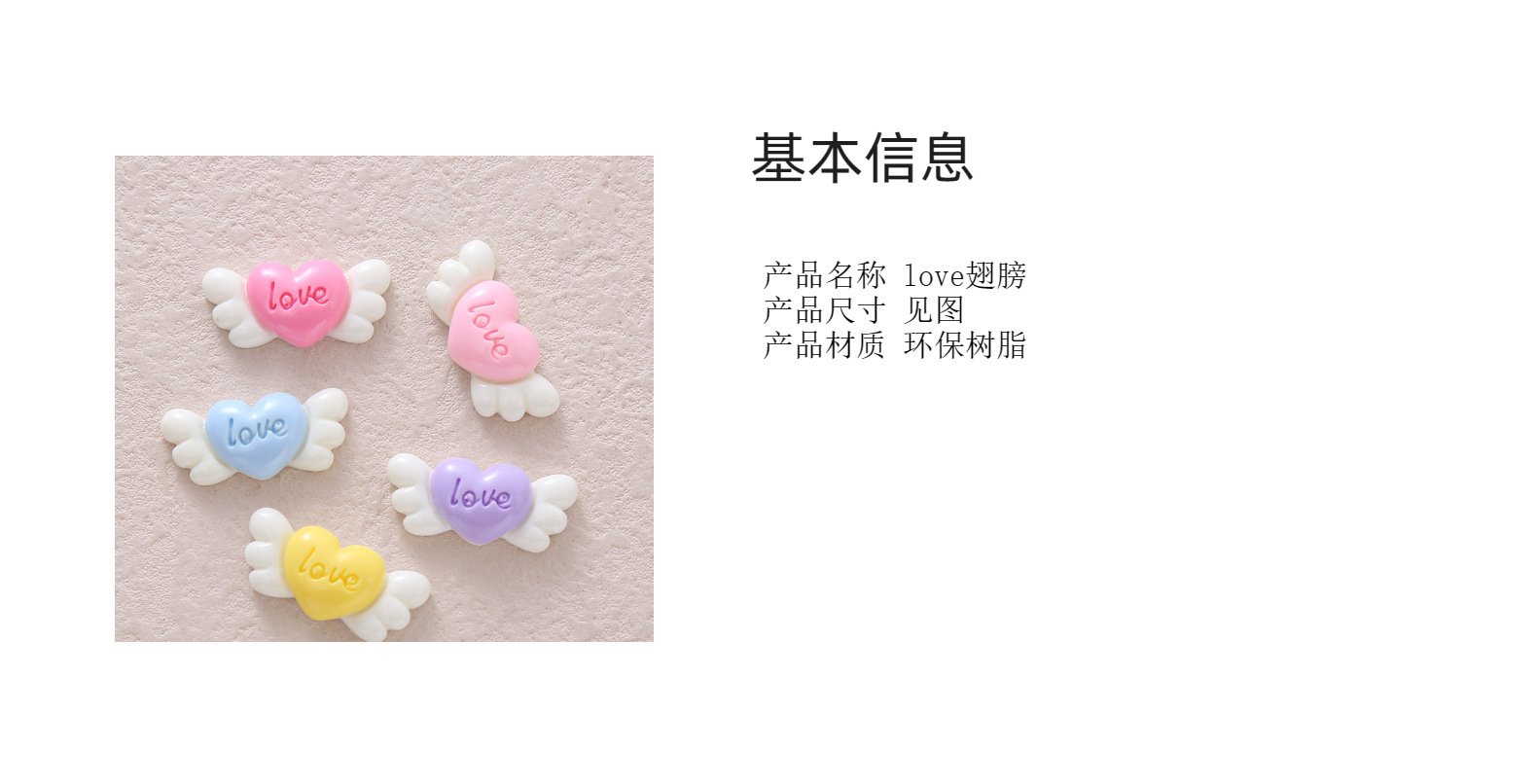 亮面LOVE翼樹脂部品卸売りクリームゴム携帯ケース子供用ヘアピン靴コップシール
