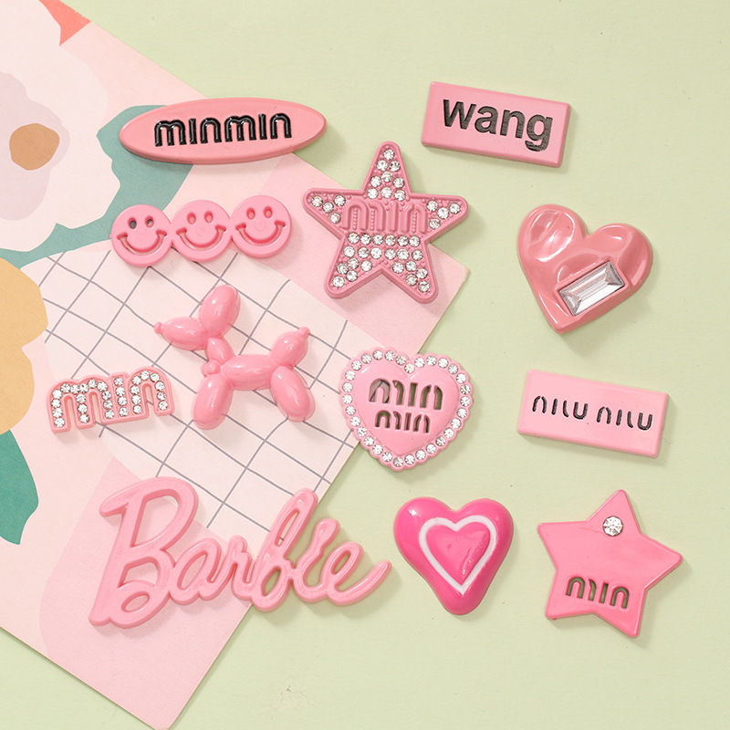 Ins薔薇ピンク愛五角星字札diyクリームゴム携帯ケースヘアピン手作り材料樹脂アクセサリー