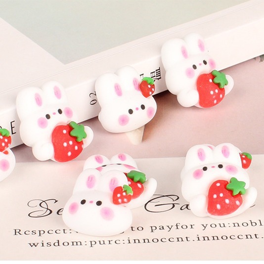 いちご兎クリームゴム携帯ケース頭飾りカードキーホルダーペンダント水杯貼りdiyアクセサリー