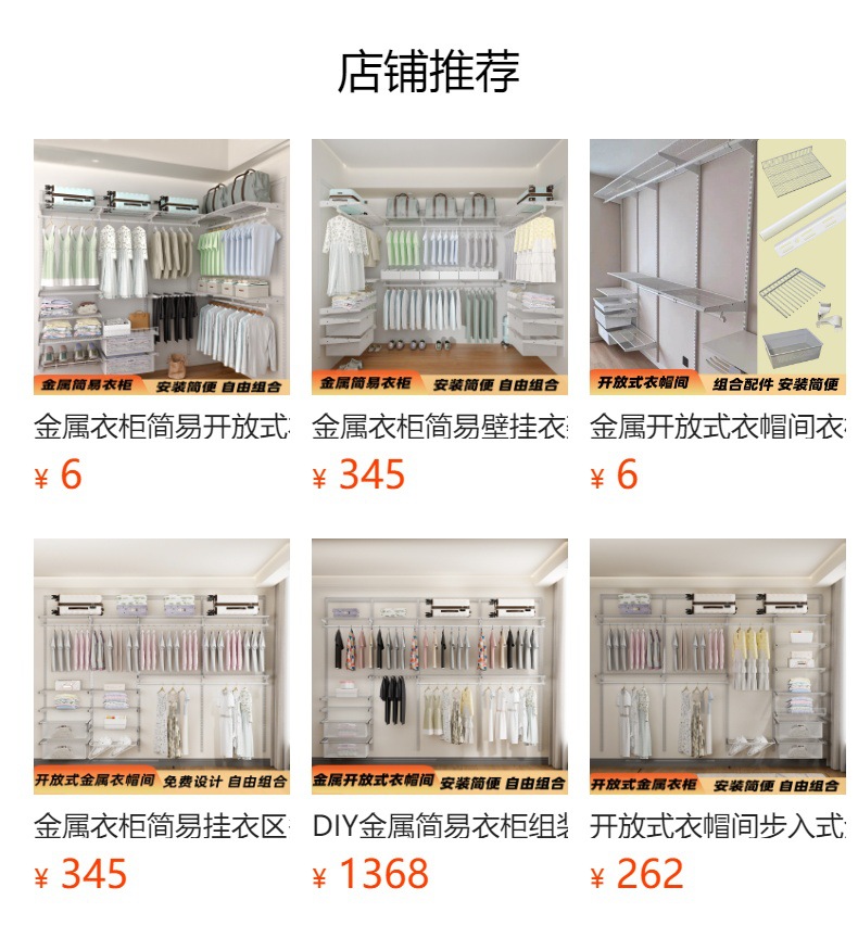 メーカー直販アルミ合金たんすDIY全体フード間金属ヨーロッパ式オープンワードローブ立柱式