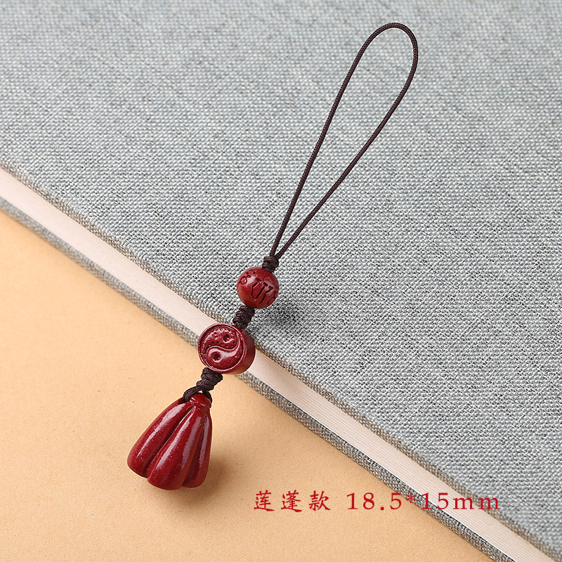 男女兼用辰砂携帯電話チェーンペンダント、絶妙なピーチウッドロータス紛失防止リスト携帯電話ケースストラップペンダントビーズ