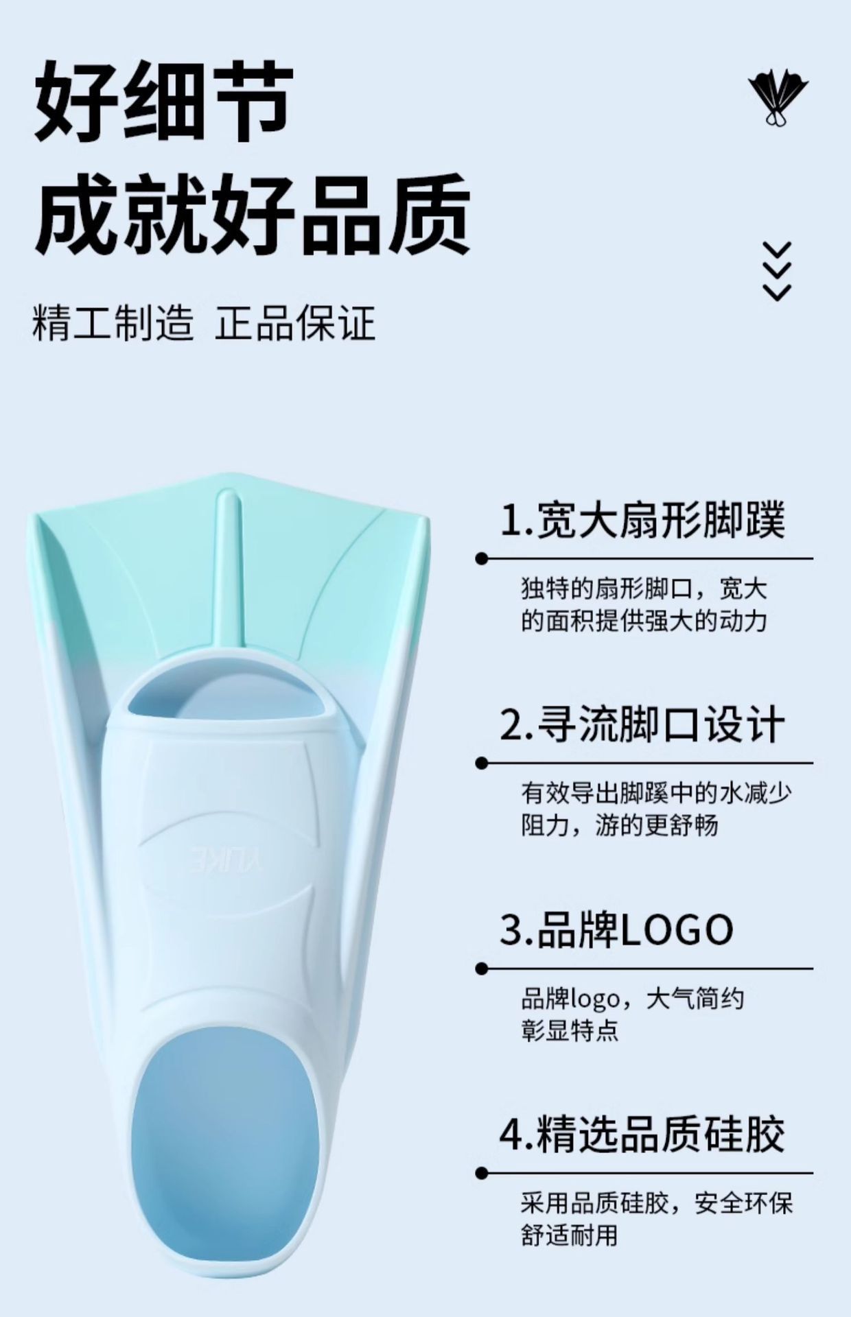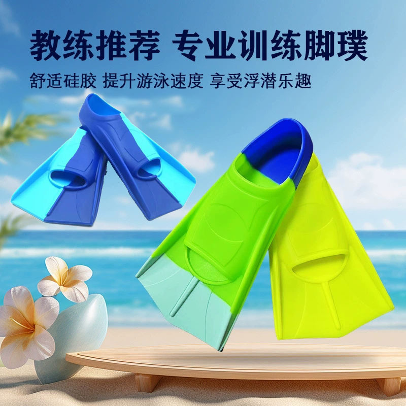 水泳足ひれ男女自由形平泳ぎ専用児童シリカゲル短足ひれ成人軽量潜水訓練装備