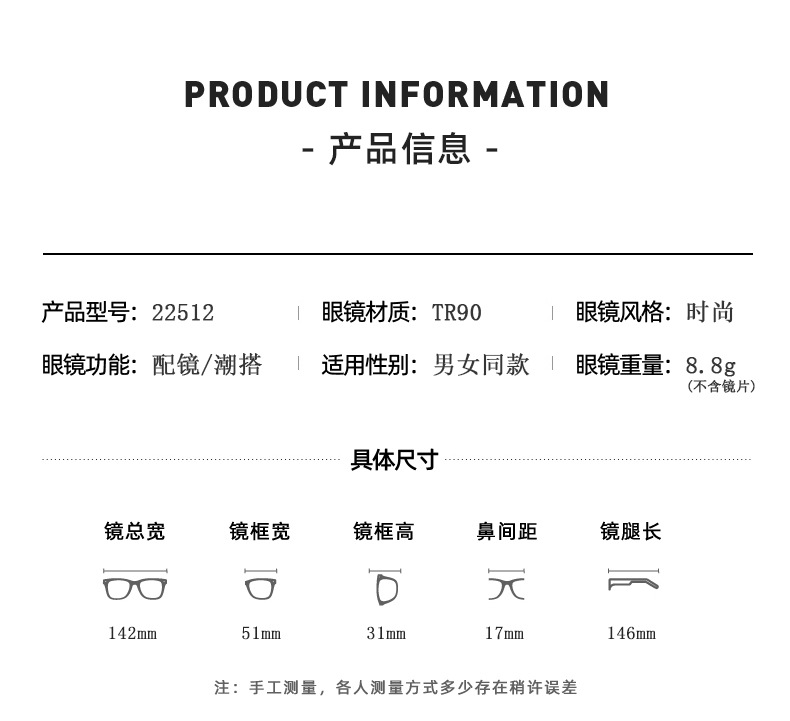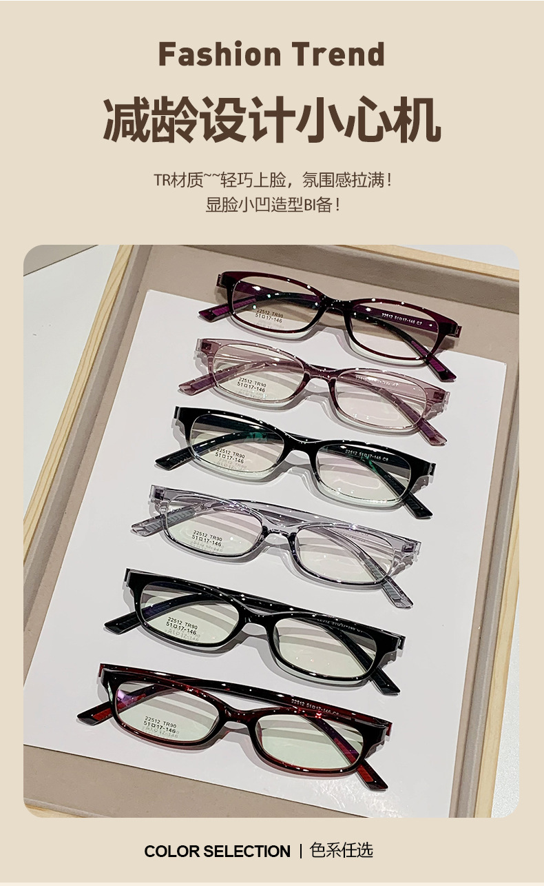 TR90气质窄款小框女复古框架配近视高度数眼镜无螺丝眼镜框22512