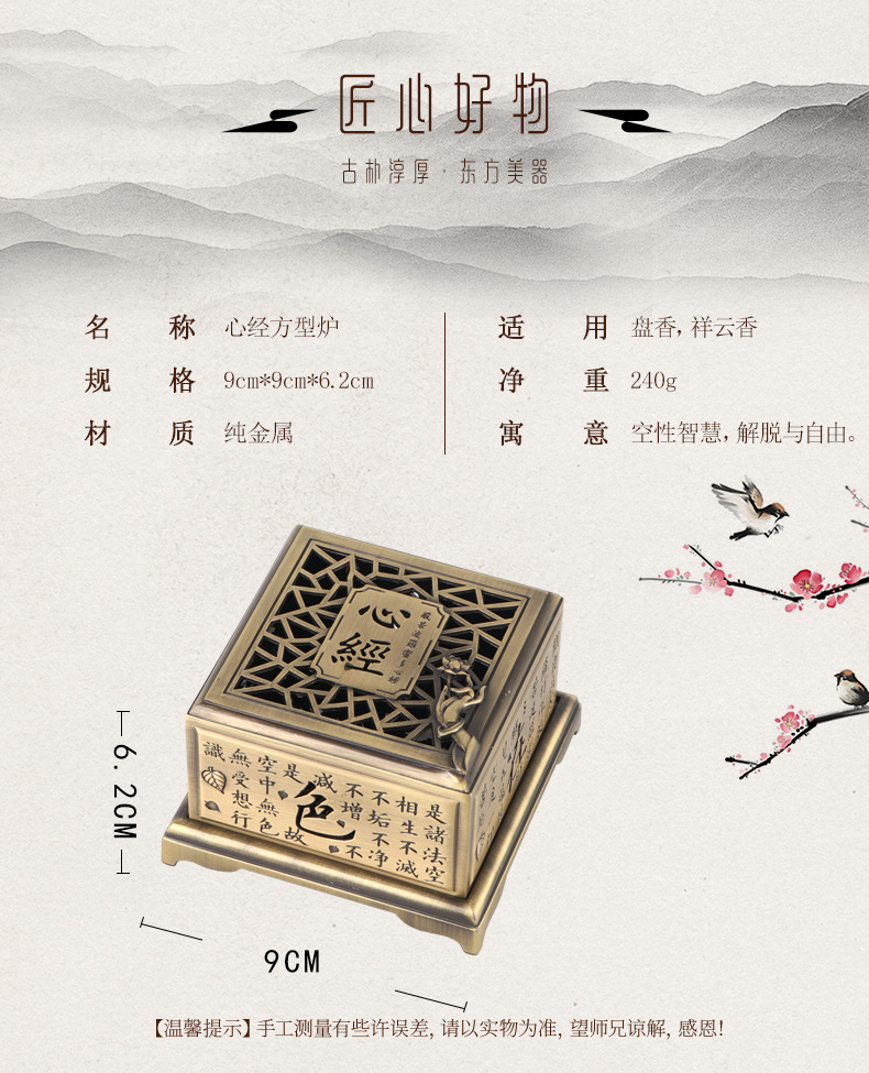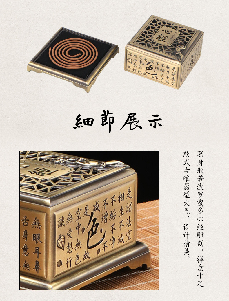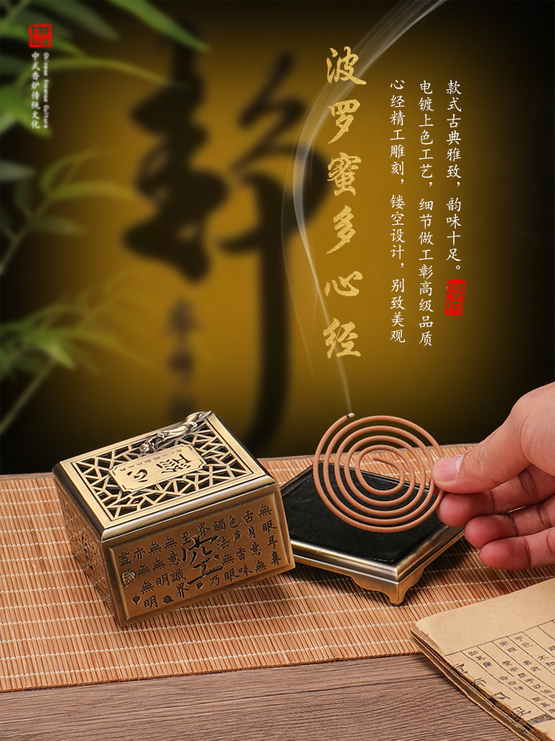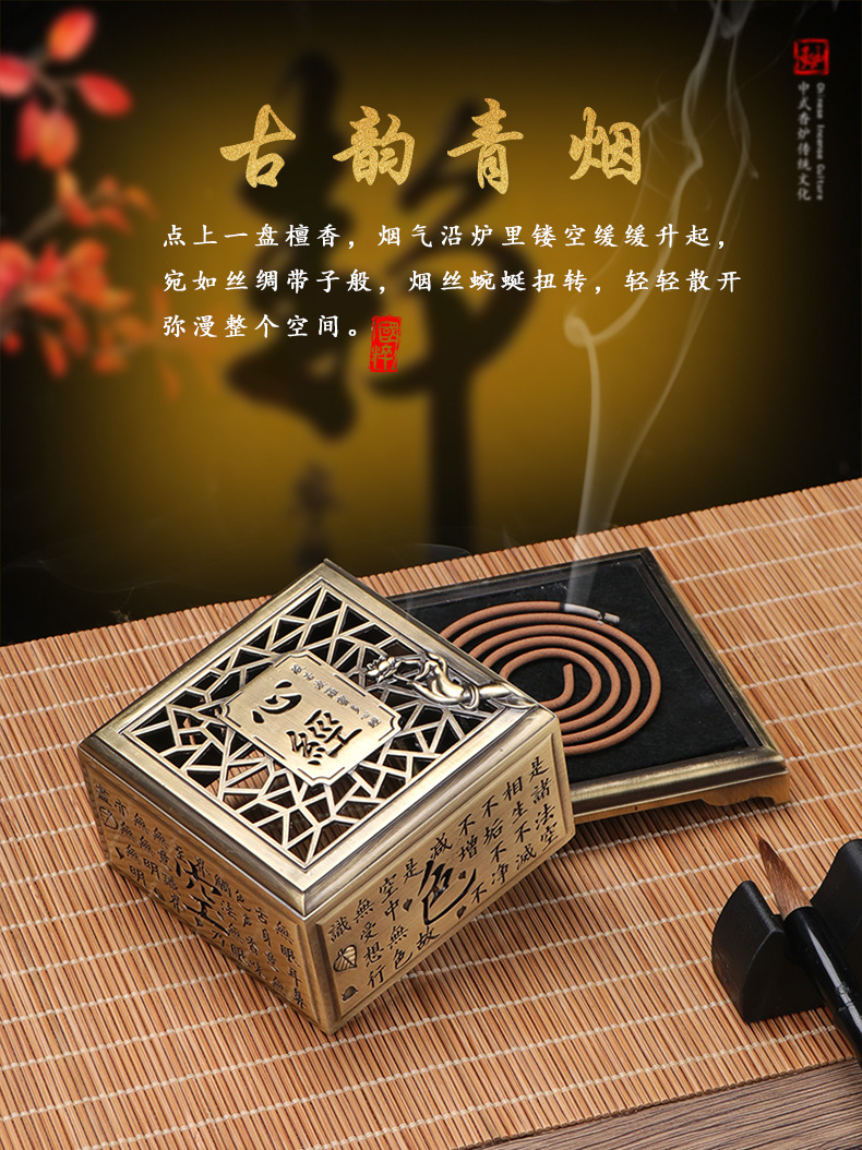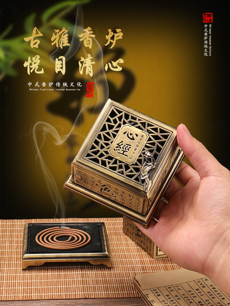 心経香炉レトロ盤香炉家庭用室内香薫炉浄化空気沈香ホノルル茶室テーブルトップ置物