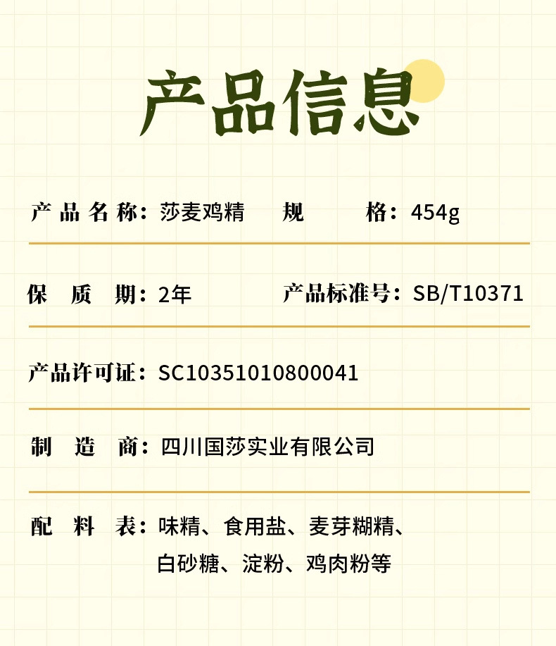 国莎 莎麦鸡精调味料454g/袋四川沙麦厨房家用高汤替代味精高鲜味