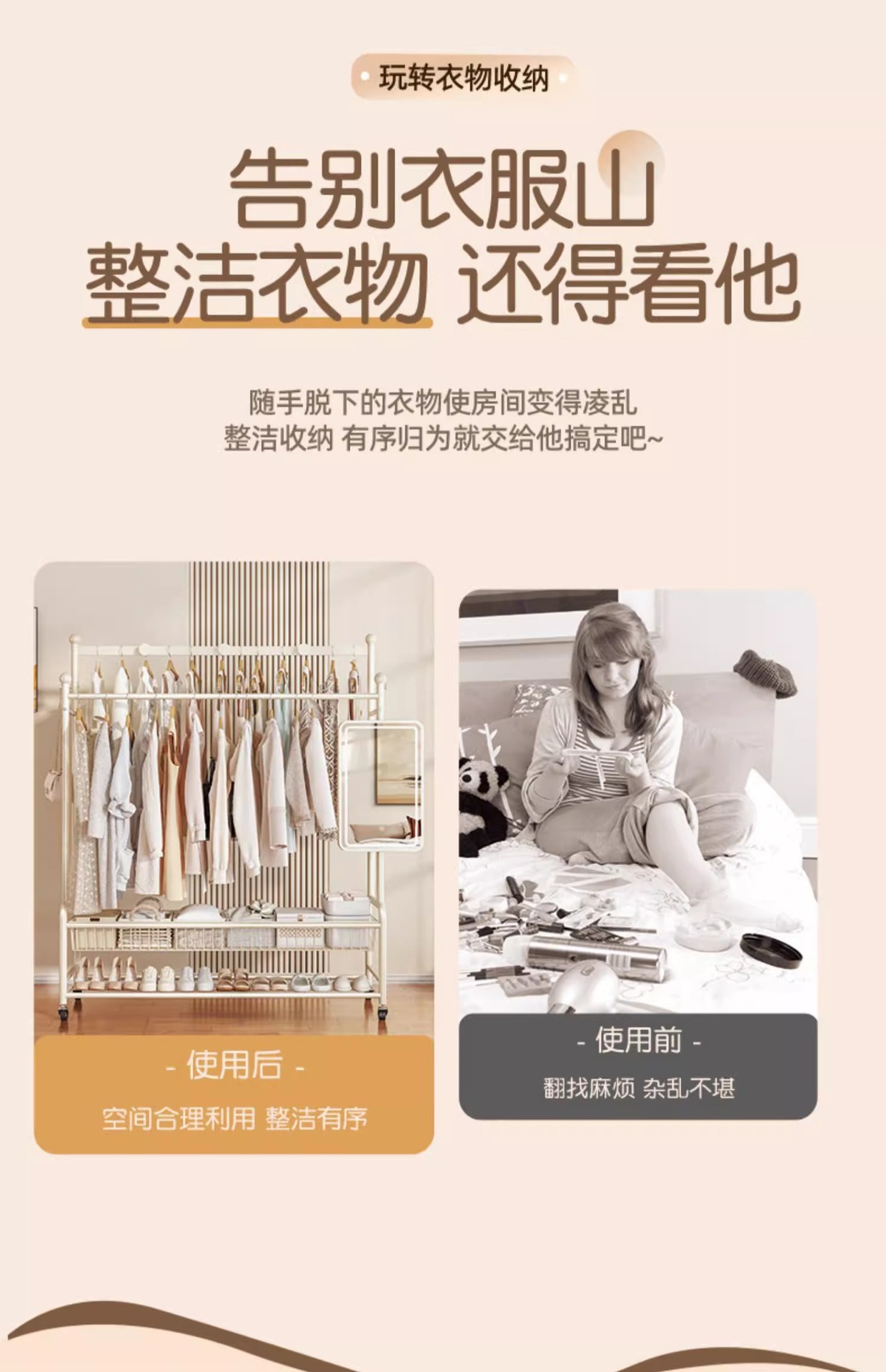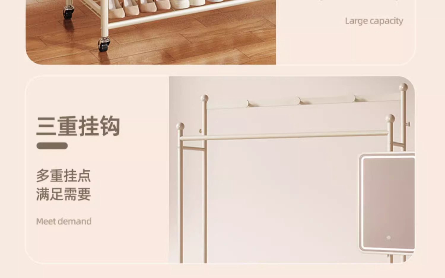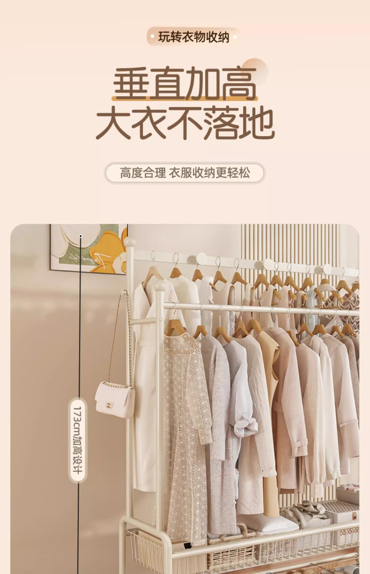 洋服ラック シンプル 取り外し可能 女子寮 猫耳型物干しロッド 寝室 多機能 アイアン収納 コートラック