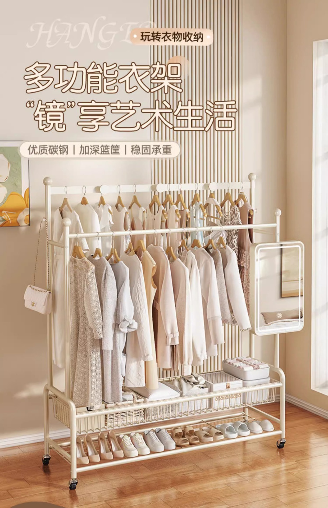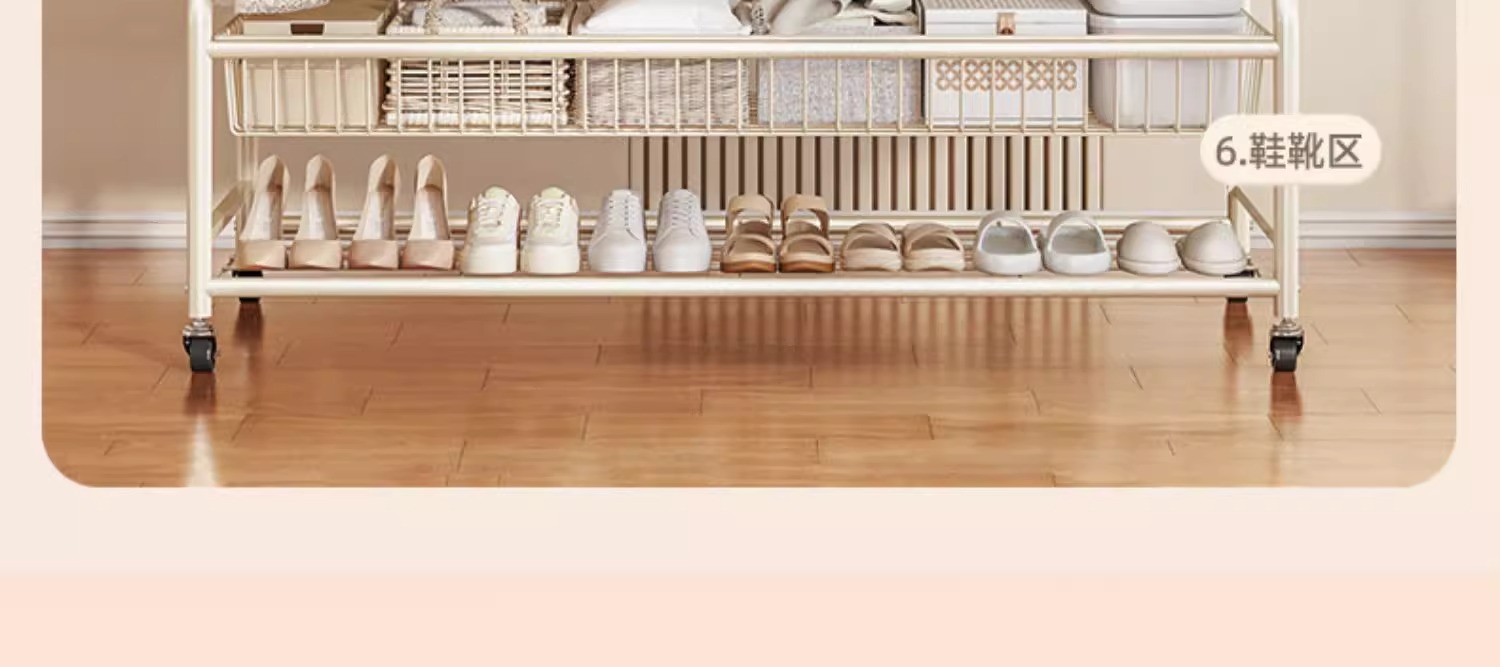 ハンガー現代簡易家庭用床置き移動可能鉄芸収納棚ベランダ干しハンガー