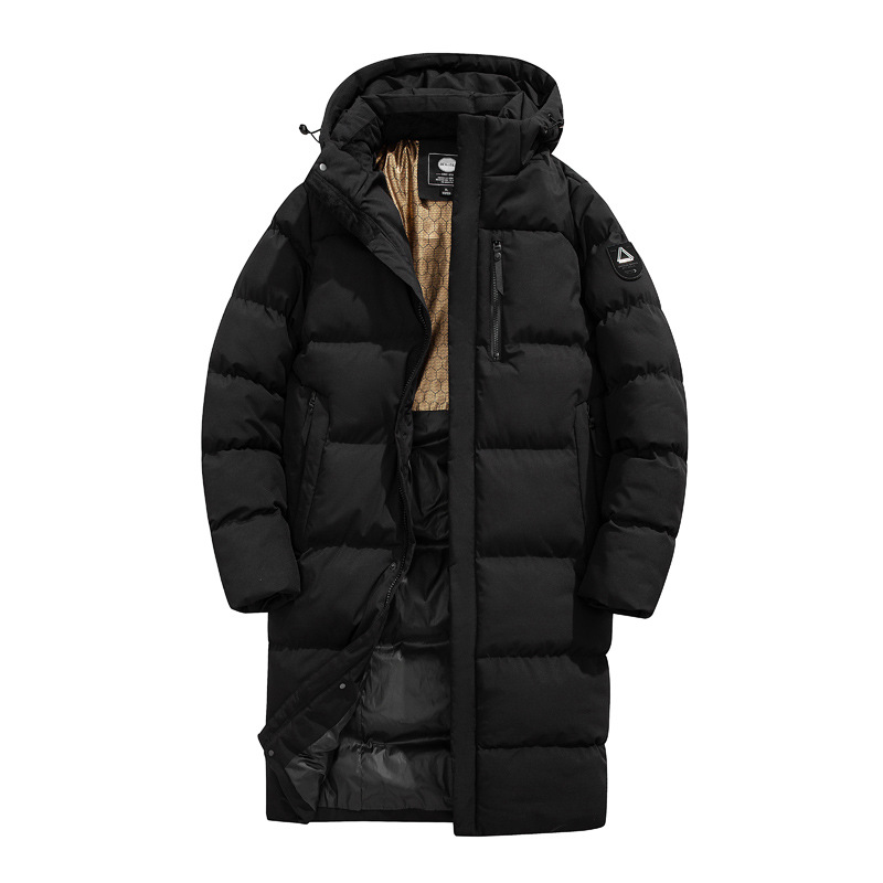 メーカー直販2024秋冬の新型ベルベットと厚手のロングタイプの帽子付き綿服のファッションブランド防風防寒ロングタイプの男性