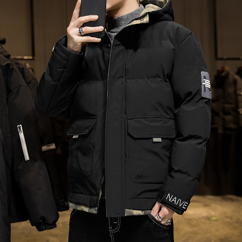 綿の服の男の2023年のファッションの新型の韓国版の潮流は帽子の冬の綿入れの上着の男性の上着の格好が良いです。