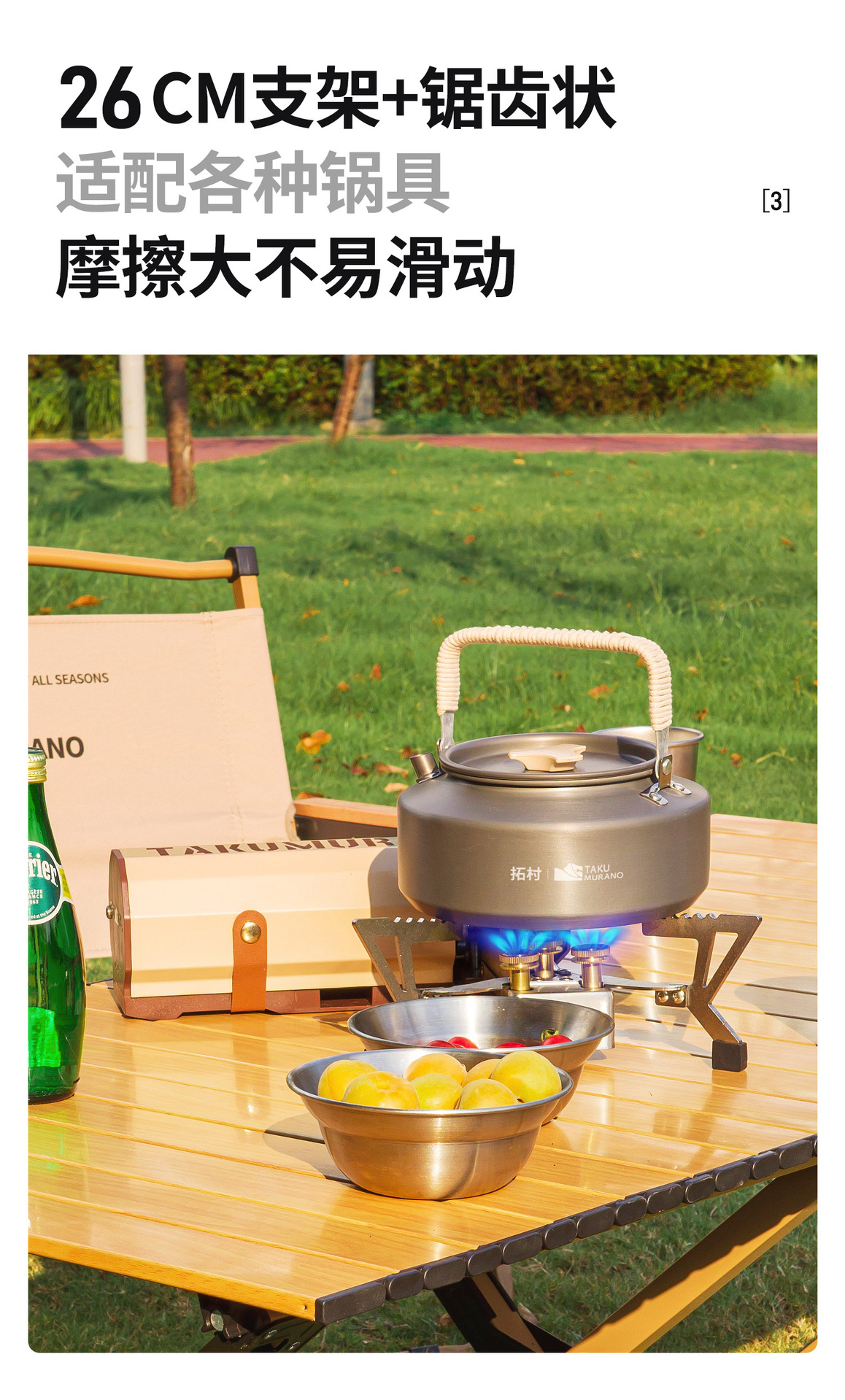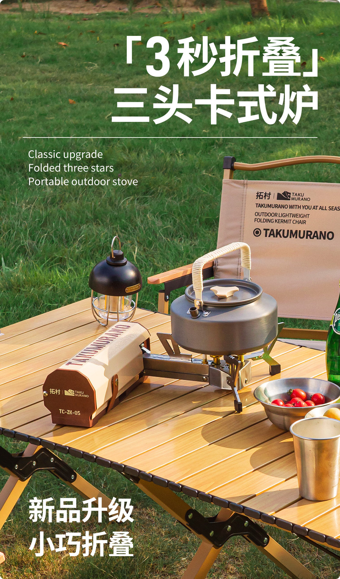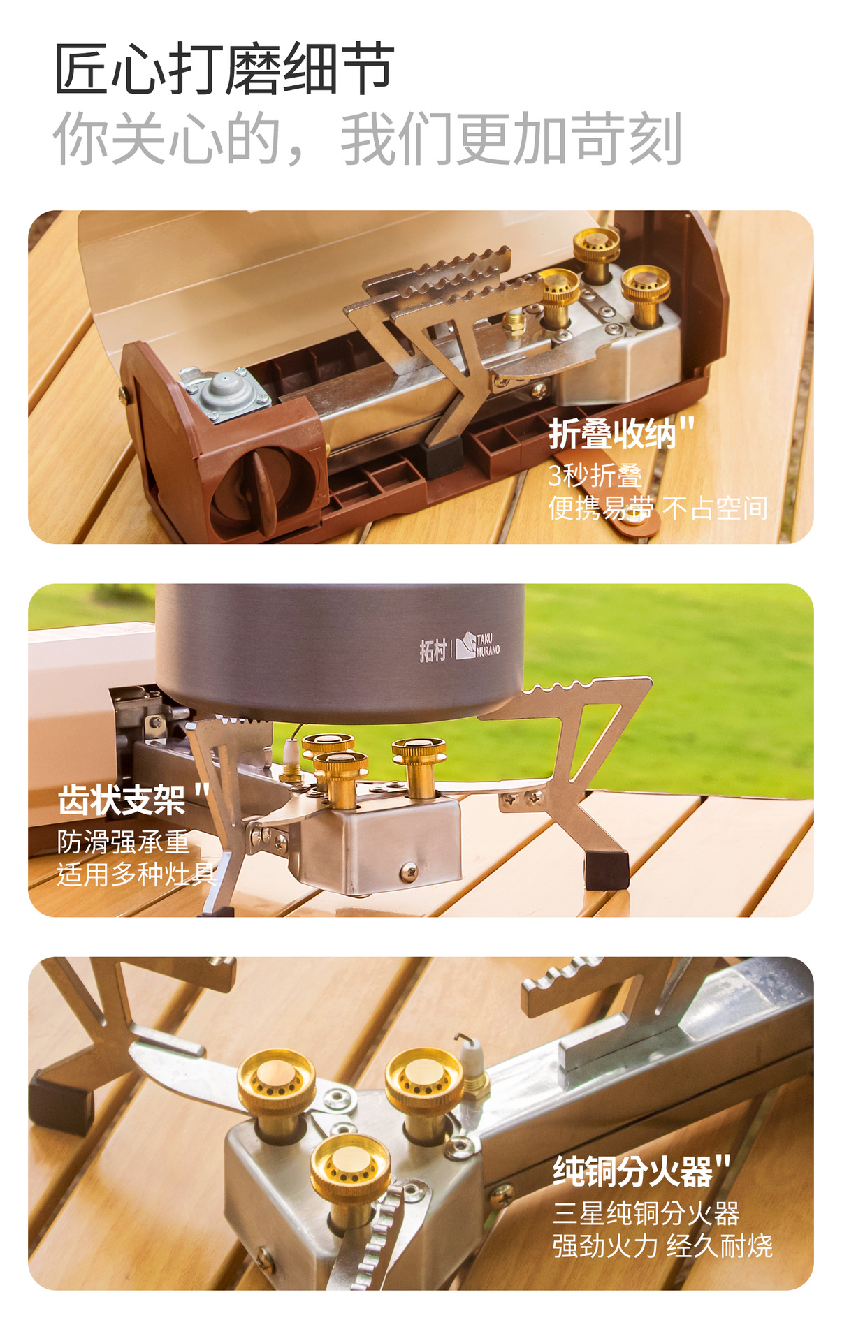 拓村戸外新型三頭折り畳み猛ストーブ戸外家庭用キャンプ携帯調理器コンロ防爆カード式炉