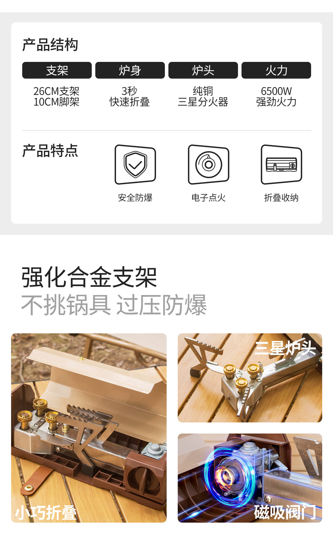 拓村カード式炉屋外携帯式野外炉具キャンプ野炊飯用品装備折りたたみガス高山炉ヘッド