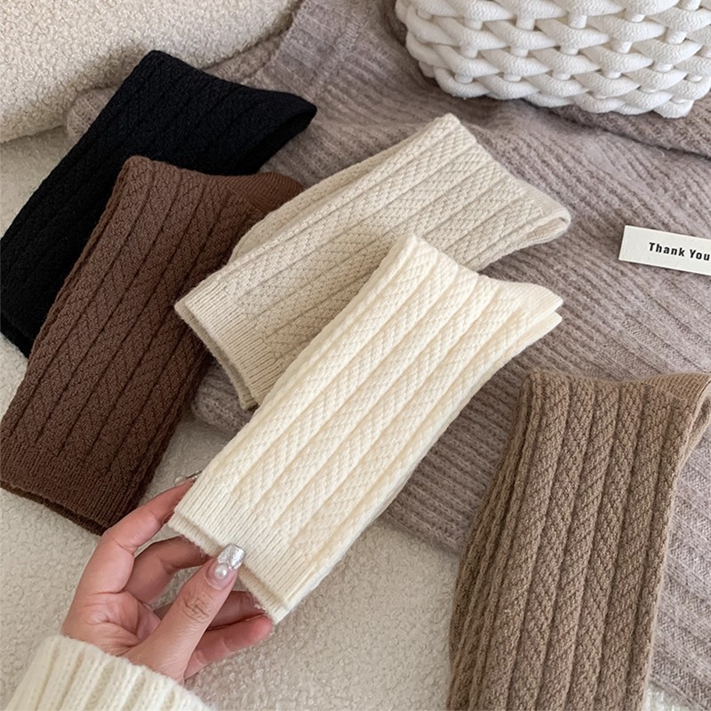 25诸暨秋冬新款袜子女士复古双针纯色简约中筒纯棉堆堆袜女批发