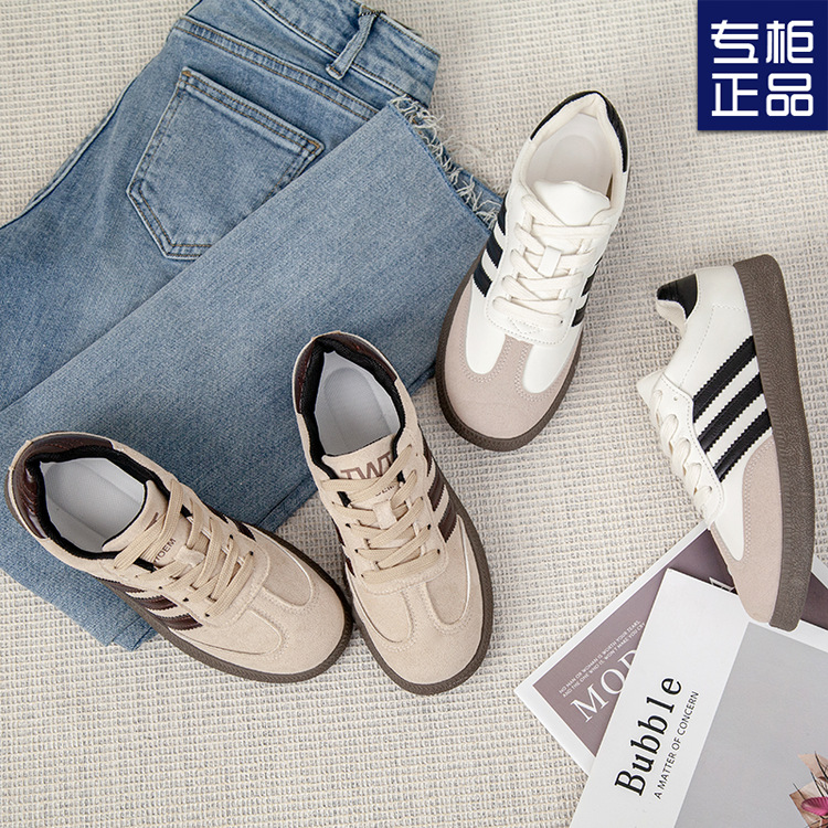 外国貿易春の新作女性用ドイツ訓練靴、レトロな平底白靴、柔らかい底のスポーツとレジャーのスニーカー、トレンディなフォレスト・ガンプの靴